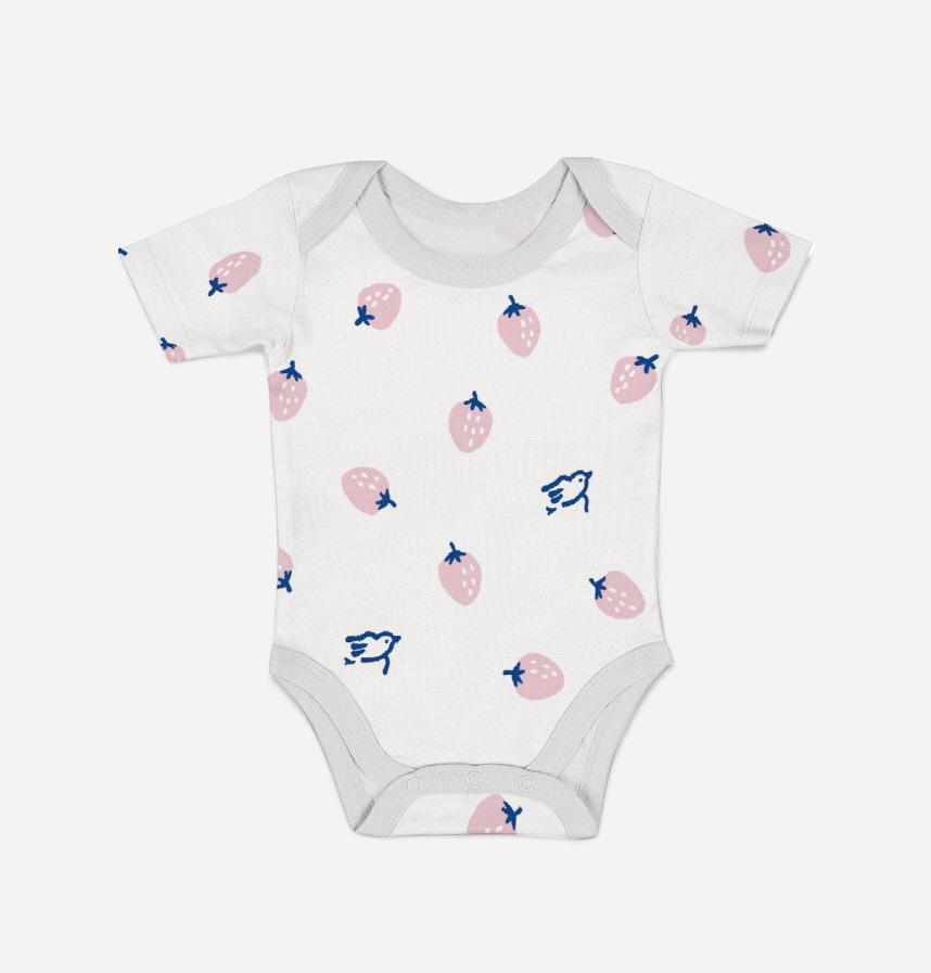 パターン説明 シンプルかわいいイチゴと幸せの青い鳥の柄