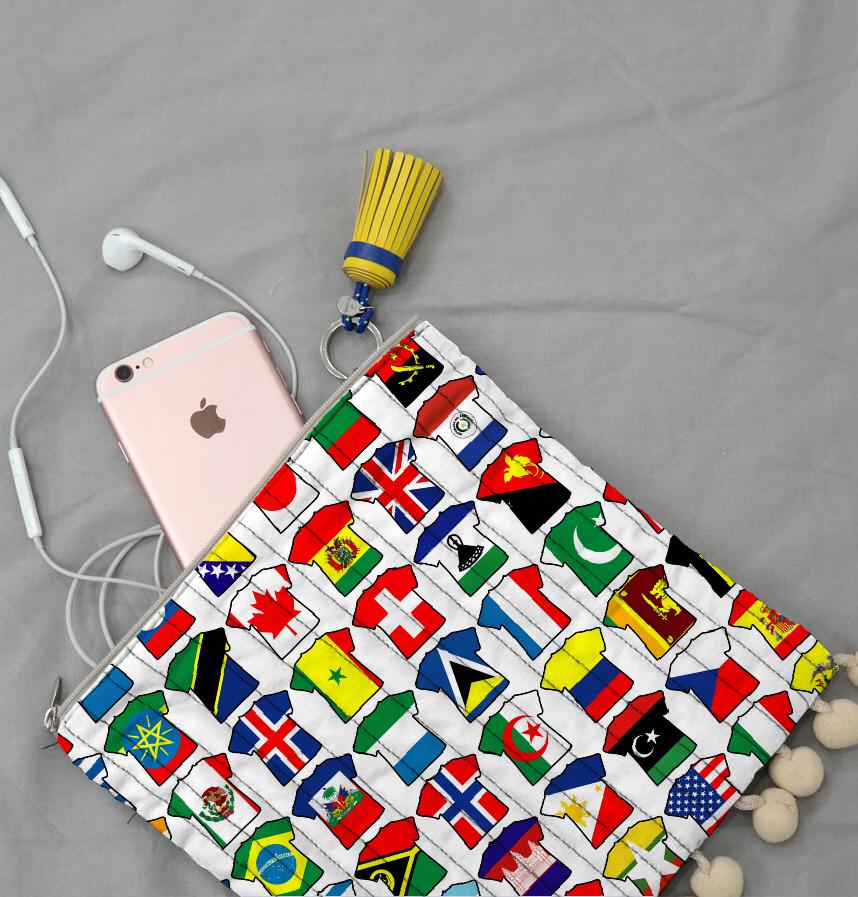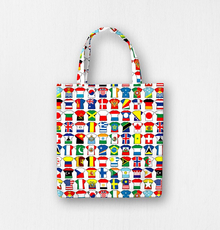 パターン説明 いろいろな国の国旗をTシャツで型取りました。
