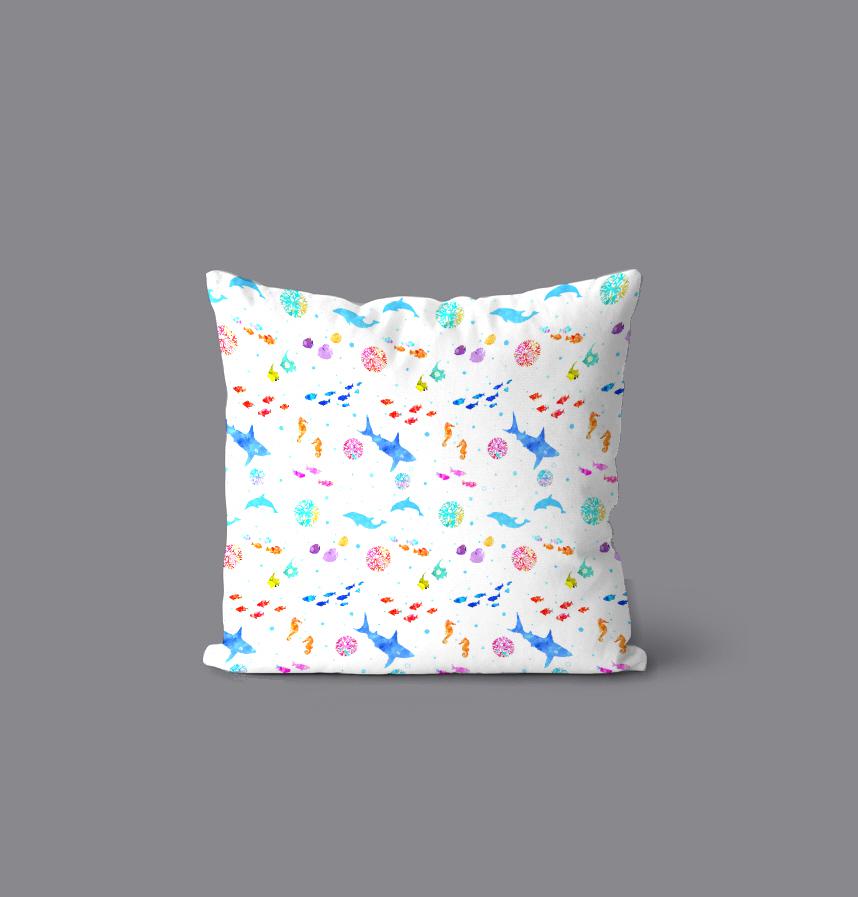 パターン説明 白地にカラフルな海の生き物達が大人可愛い。夏向きの柄です。キッズ用にも!
