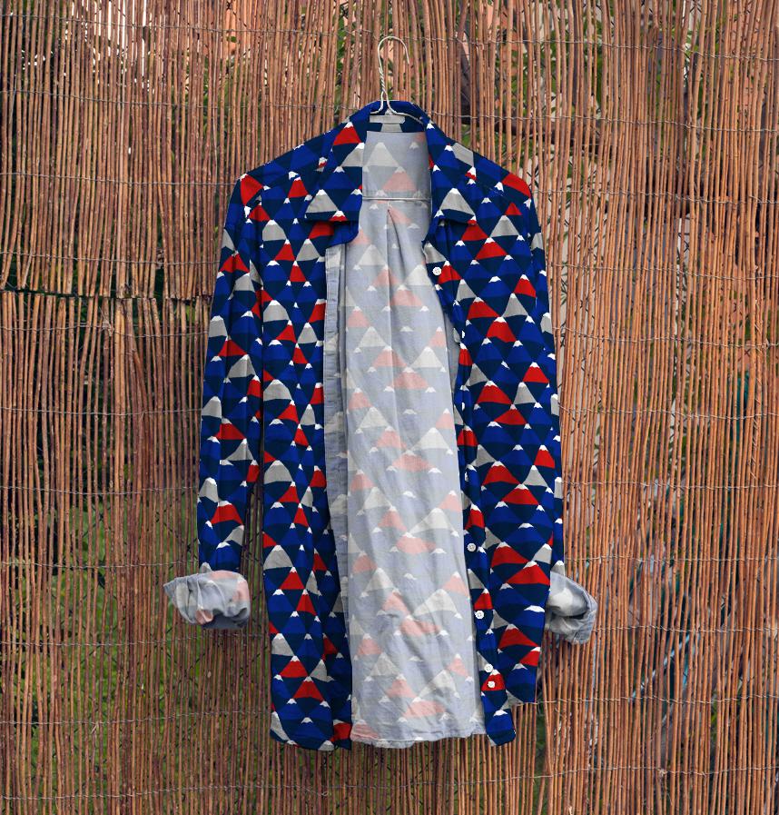パターン説明 ジオメトリックな富士山柄。和モダンな雰囲気の紺地。