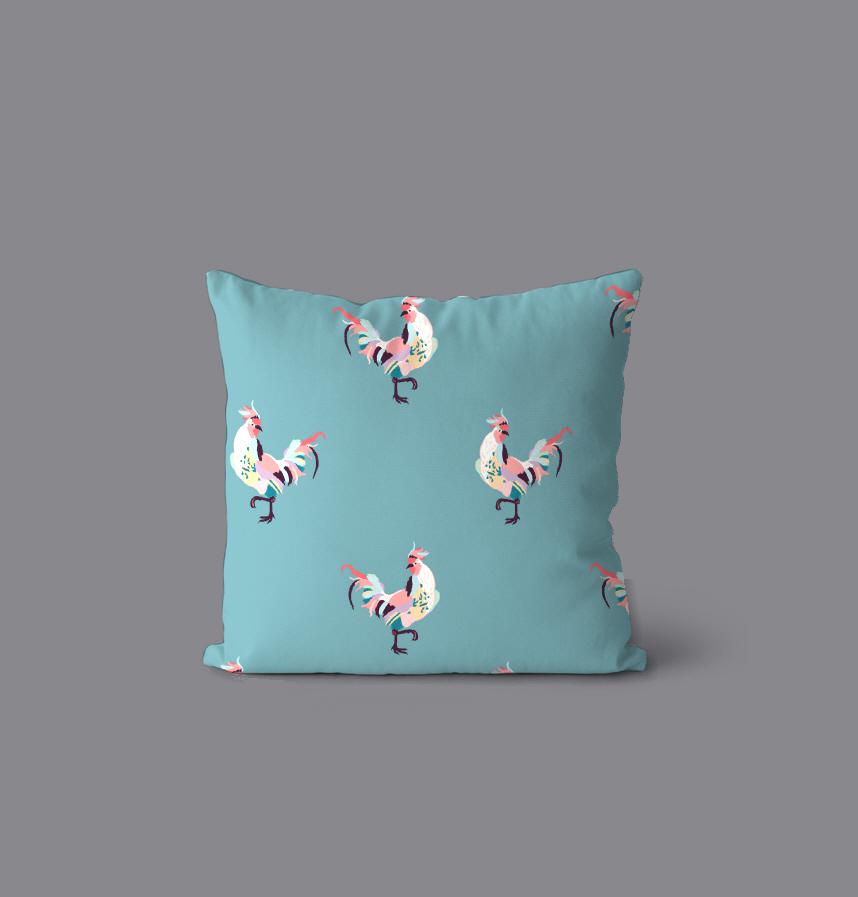 パターン説明 カラフルにわとりターコイズ