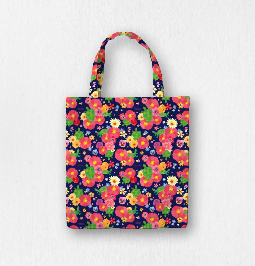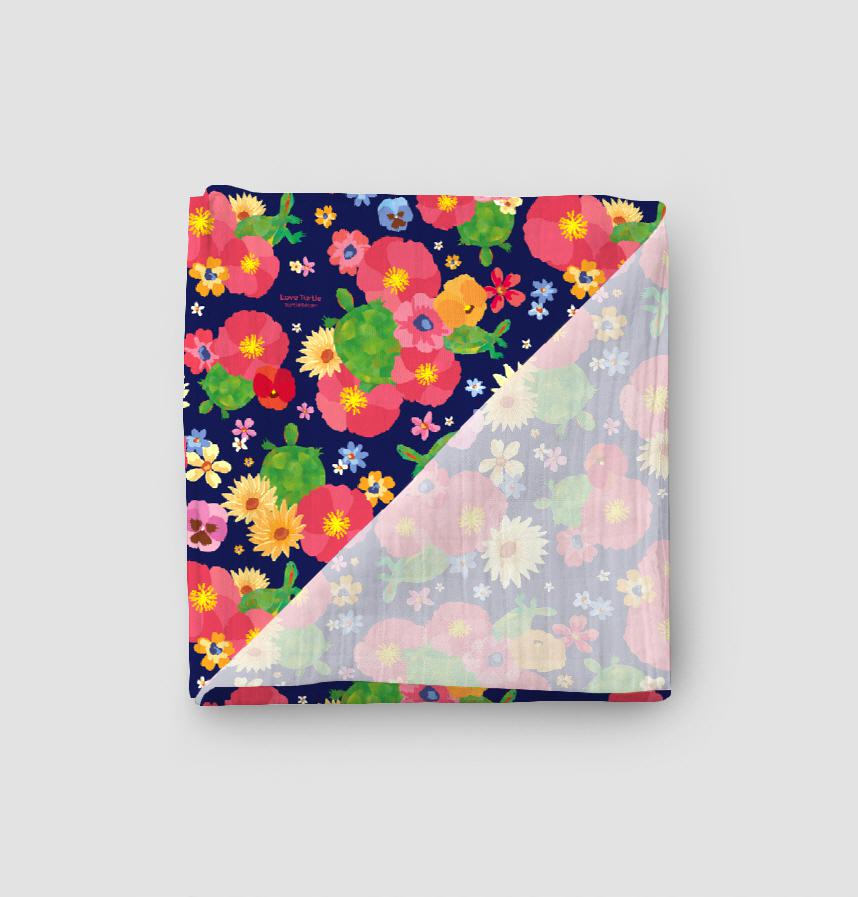 ネイビーのベースに亀と花柄をモチーフに明るいイメージで仕上げました。