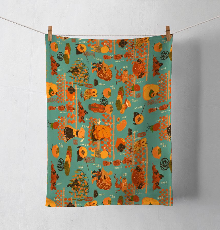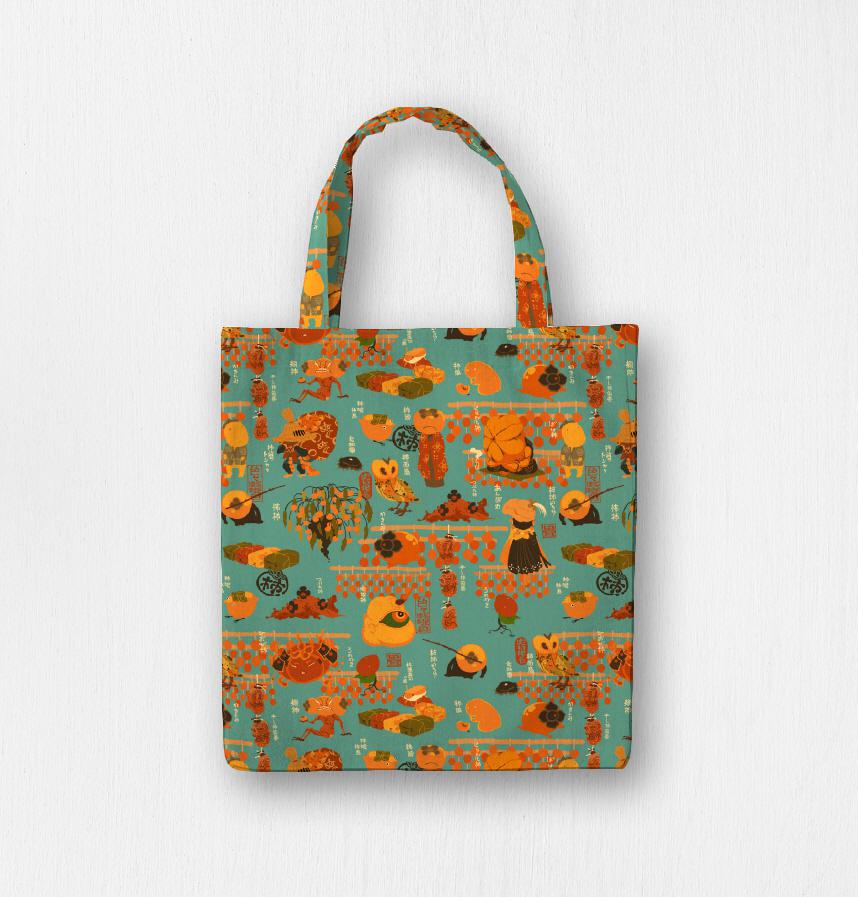 秋色に染まった柿の妖怪たちをデザインにしました。