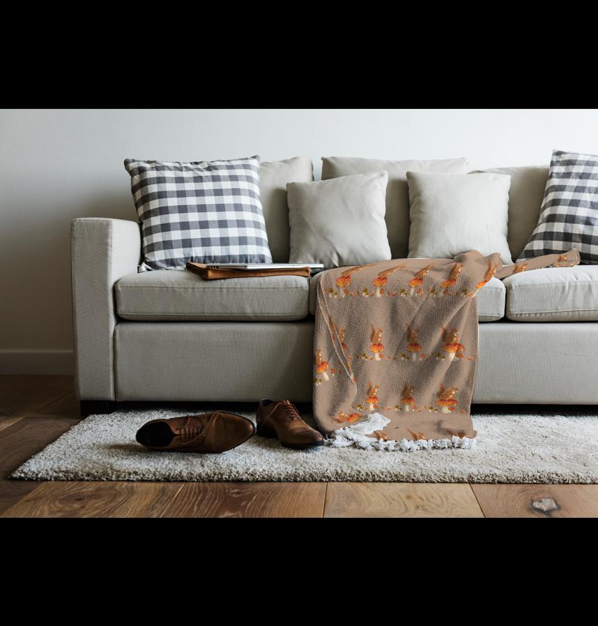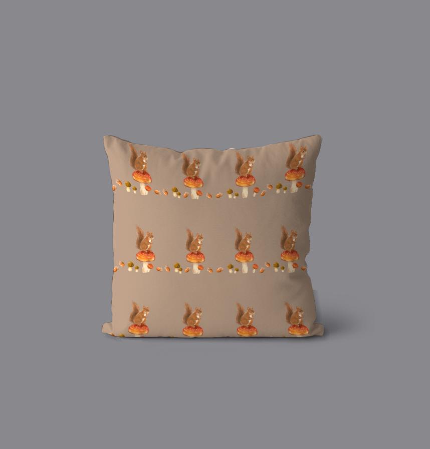 キノコの上に乗ったリスやどんぐりを並べてボーダー状になったデザインです。