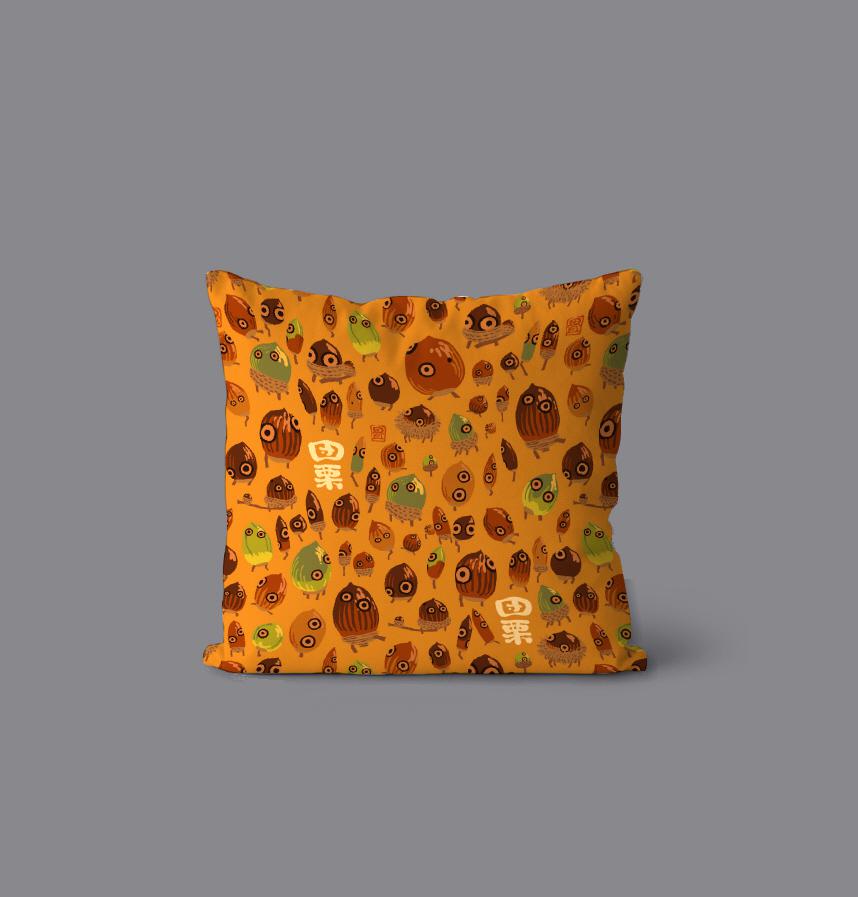 落ちて目が出たどんぐりお化けがたくさん集まったデザインです。