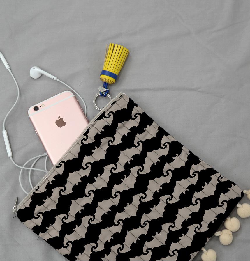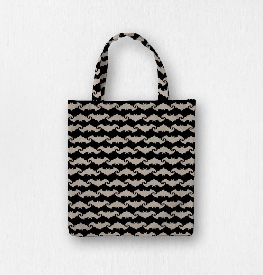 和風のコウモリ柄を互い違いに並べて、波のような連続模様を作りました。
