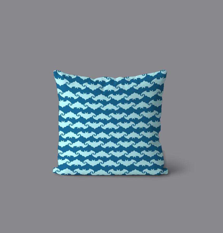 和風のコウモリ柄を互い違いに並べて、波のような連続模様を作りました。