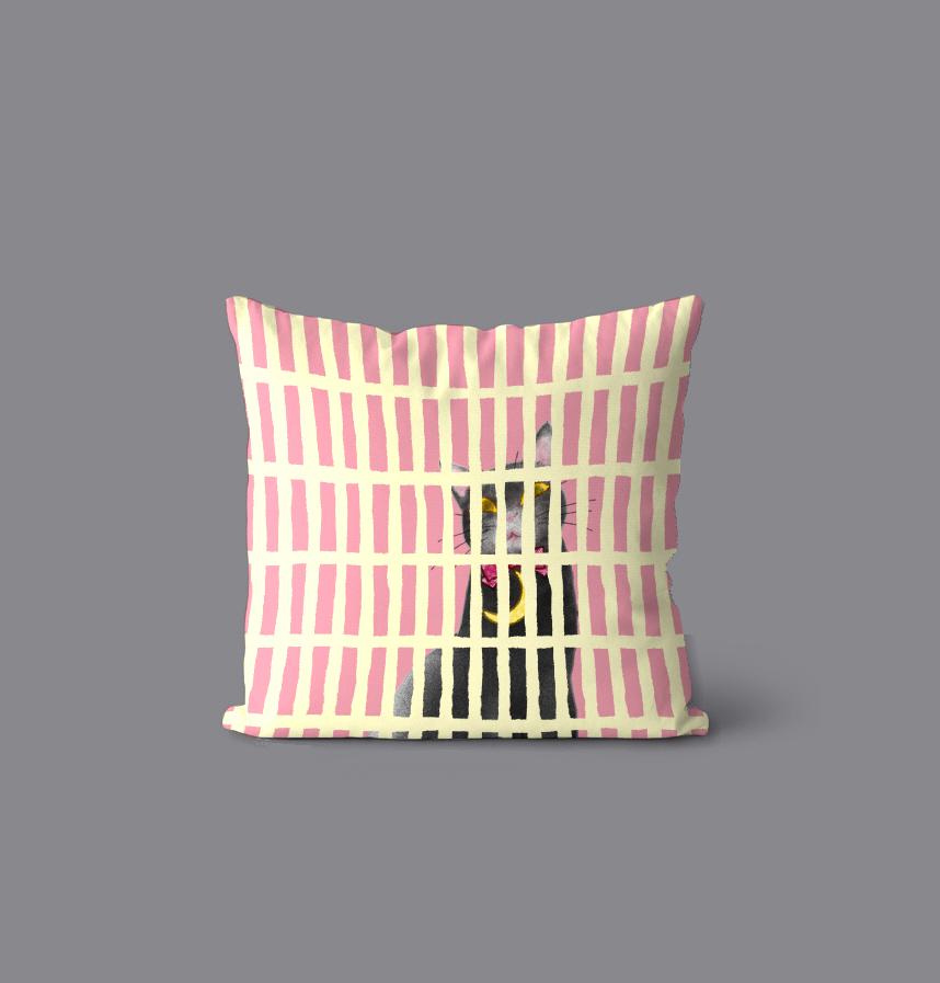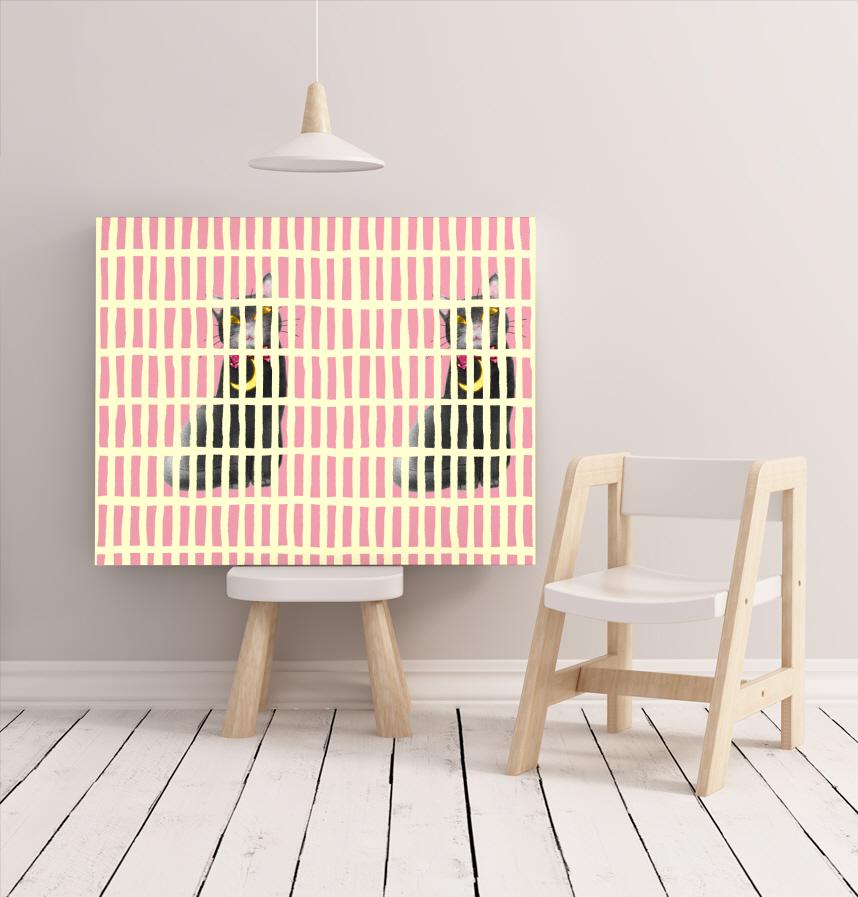 パターン名 黒猫と三日月 北欧風格子柄 オレンジxクリーム