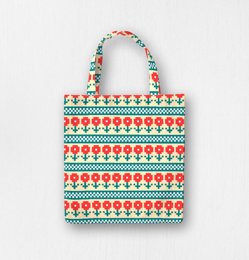 赤いお花の北欧風の図案です。