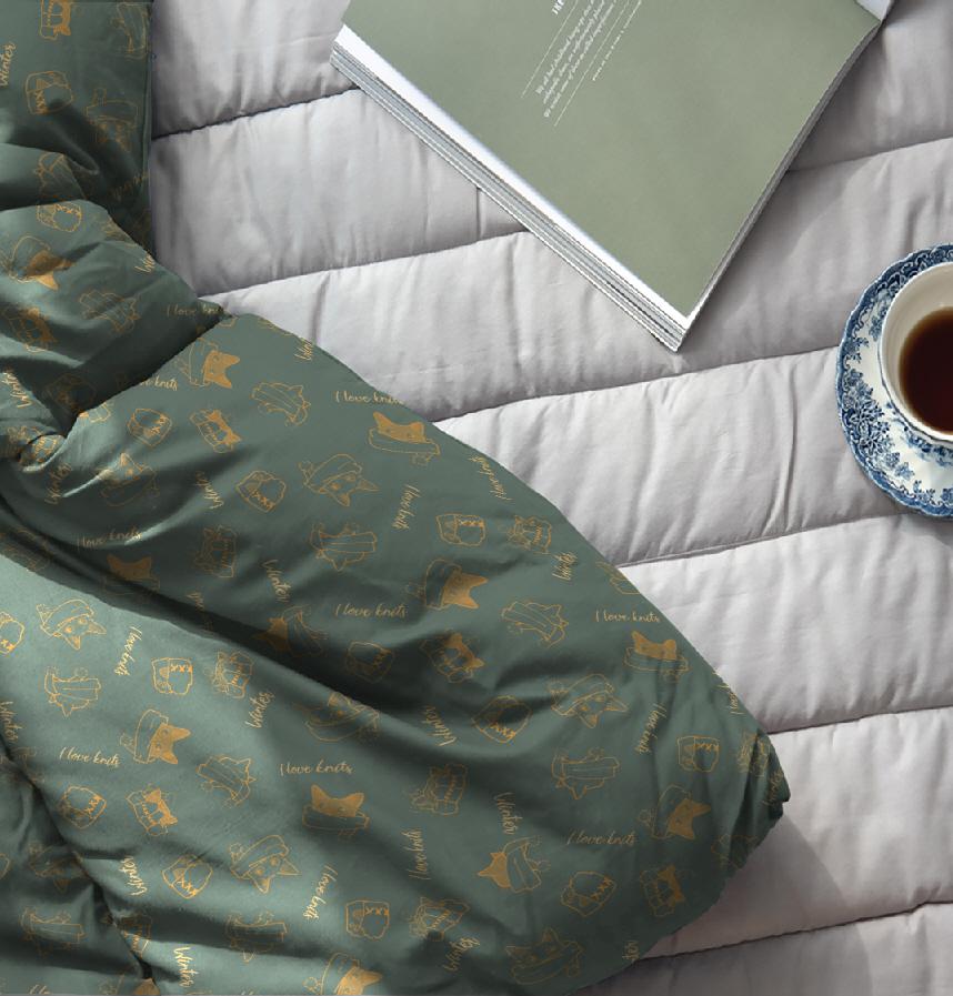 パターン名 マフラーと猫 タイポグラフィ(スモーキーグリーン)