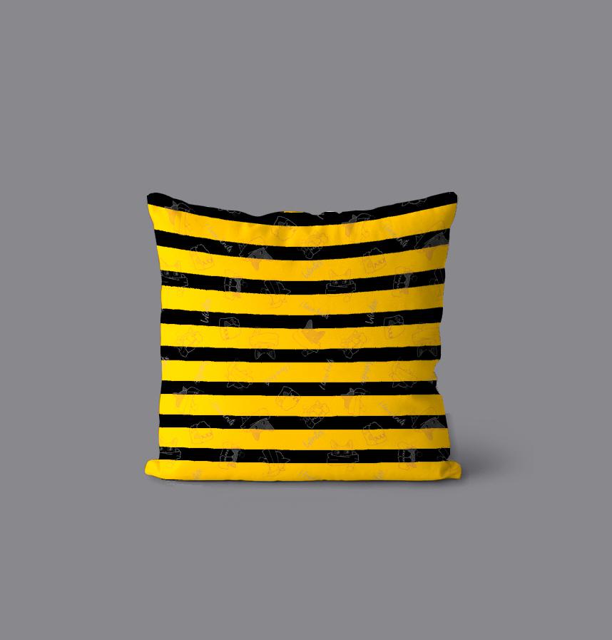 パターン名 マフラーと猫 タイポグラフィ ストライプ(黒x黄)