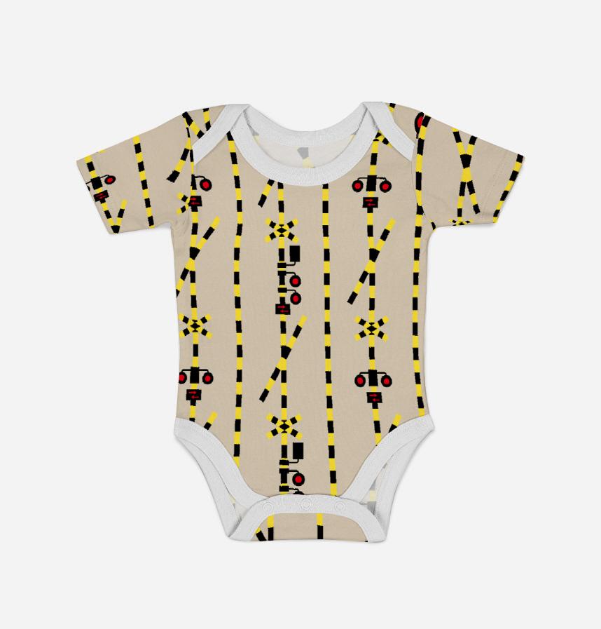 パターン説明 踏切をモチーフにしたストライプパターンです。警報灯が横に並んだA型踏切と、縦に並んだB型踏切をミックスし、バリエーションを持たせました。バーの太さは100%表示で約5mmになります。インテリア・小物・入園入学グッズなどに。