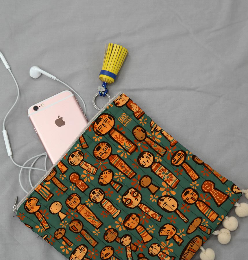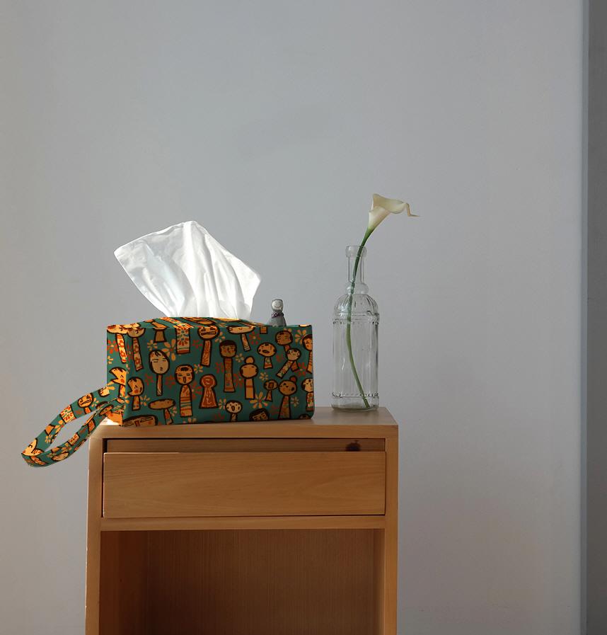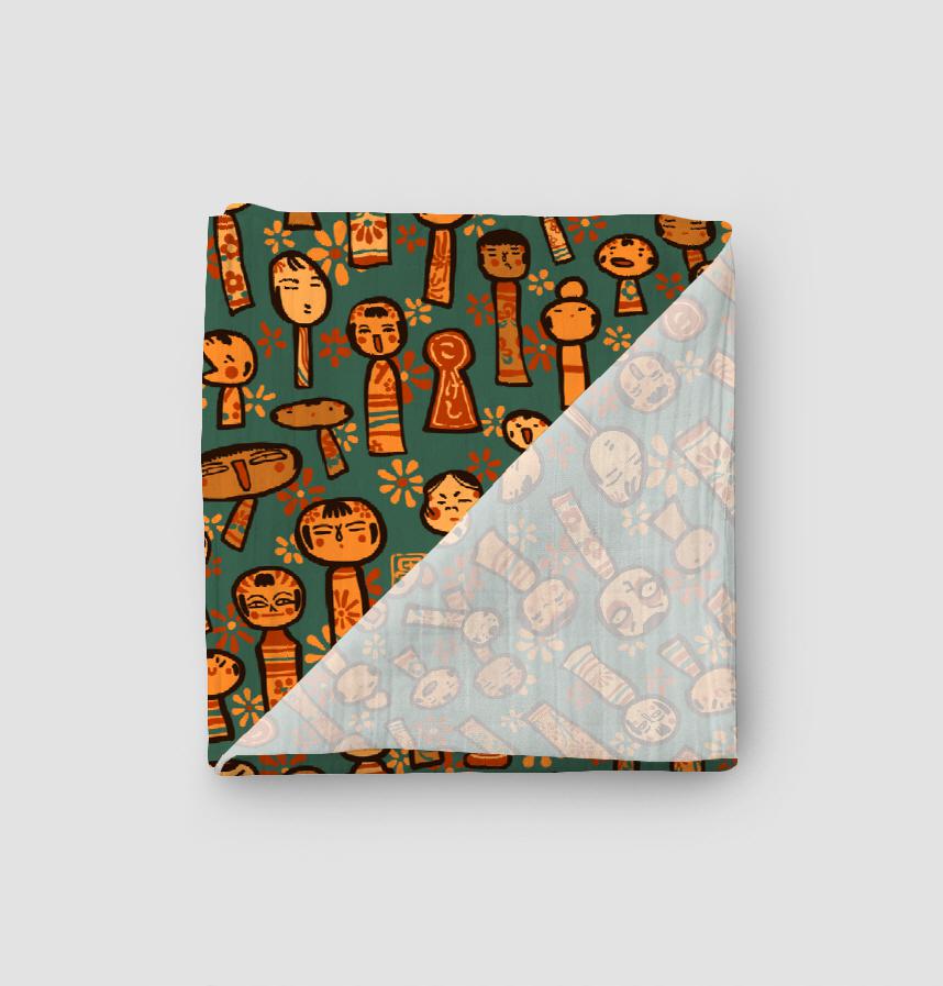 模様、形、お顔さまざまなこけし達の絵をデザインにしました。