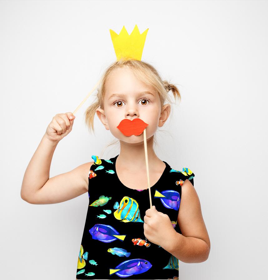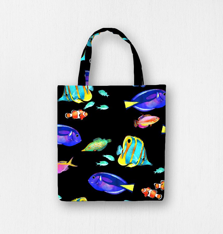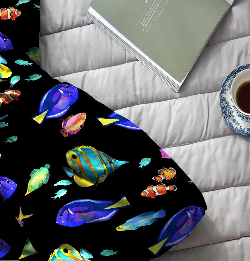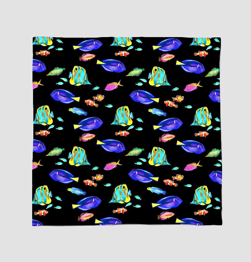 手描きのカラフルな熱帯魚を散りばめました!