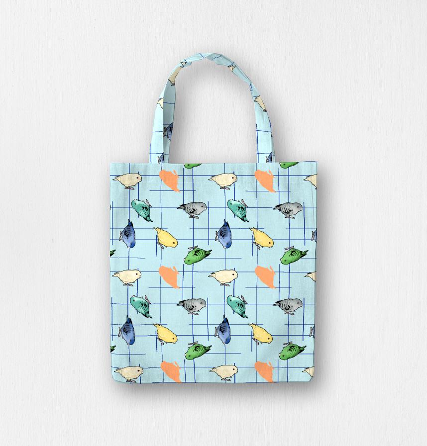 パターン説明 サザナミインコと格子柄 白藍 です。