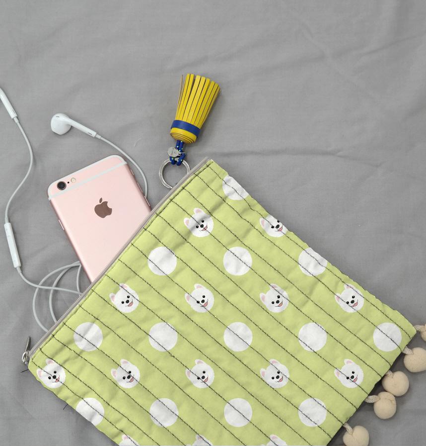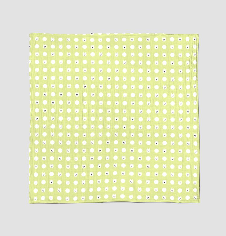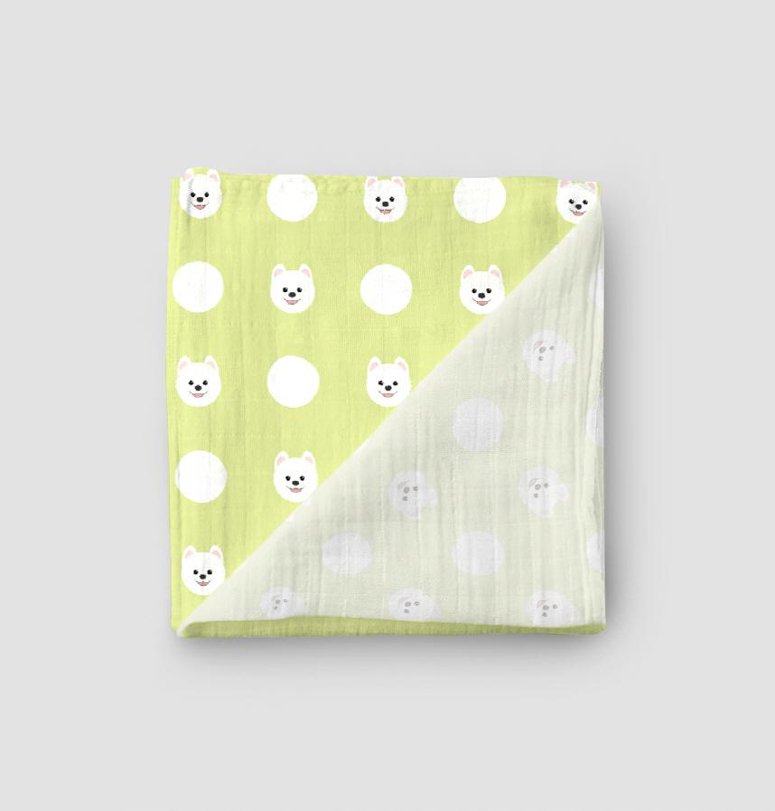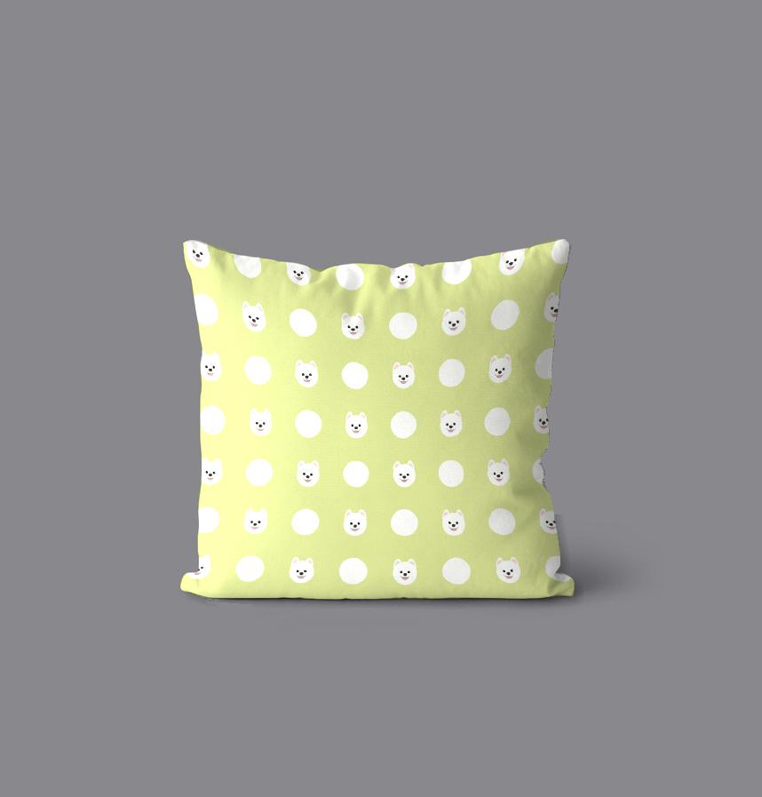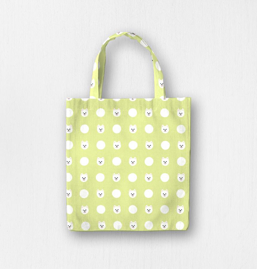 もふもふのわんこのお顔とシンプルな白い丸のドット柄