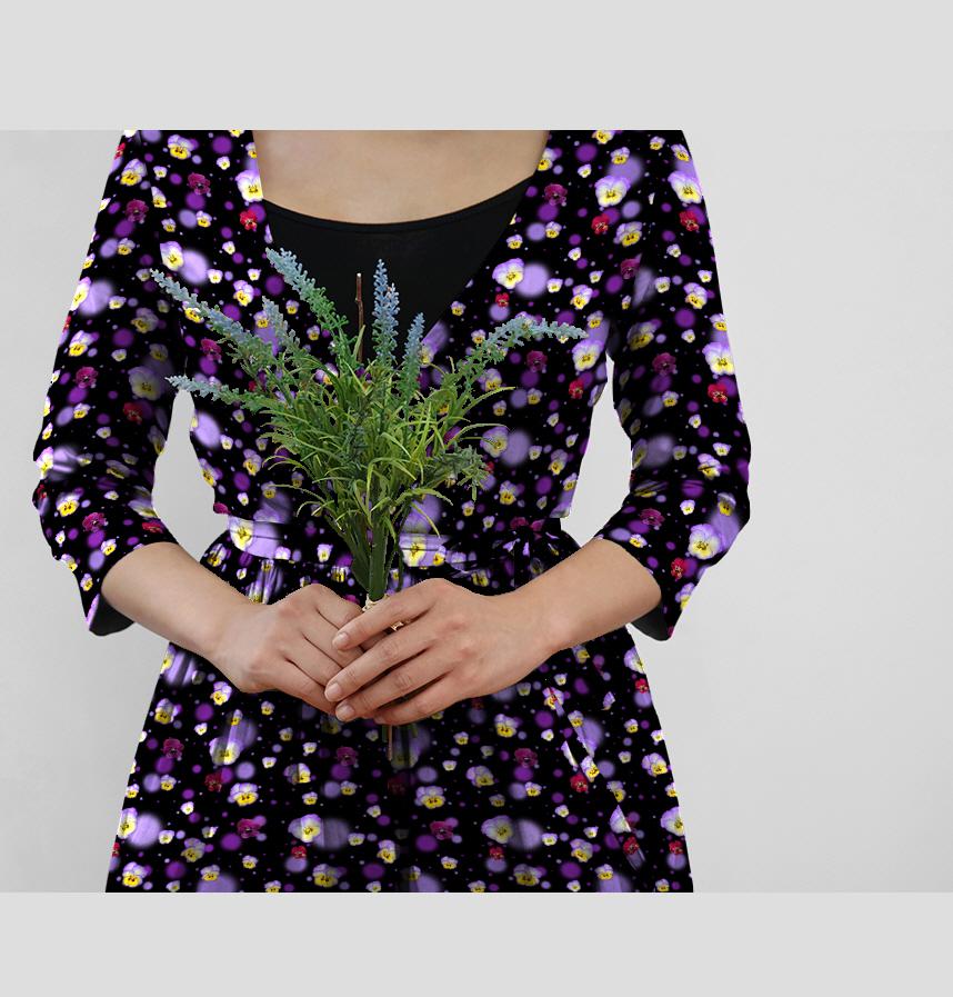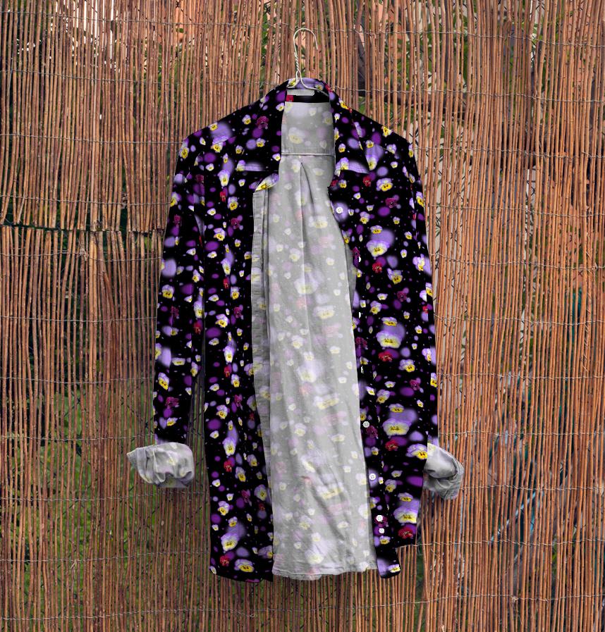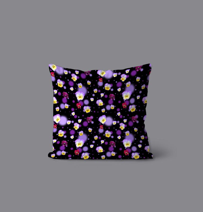 本物のパンジーの花を散りばめた幻想的なデザイン。