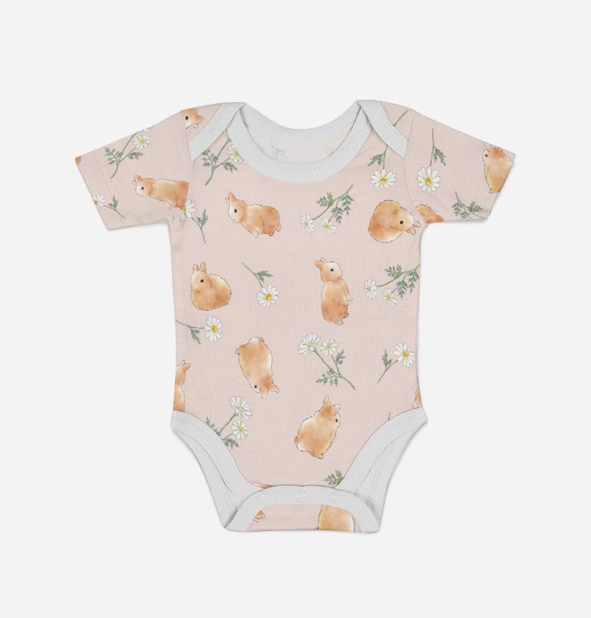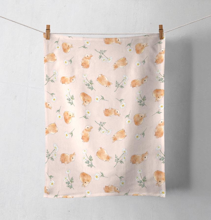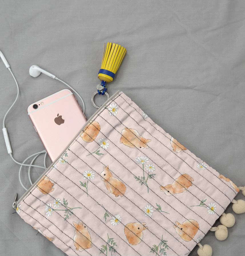 うさぎと花のデザインです。子供服にはもちろん、大人用の雑貨や小物にもいかがでしょうか。