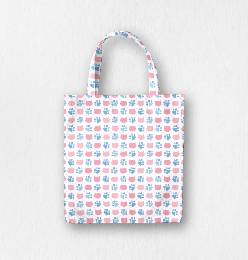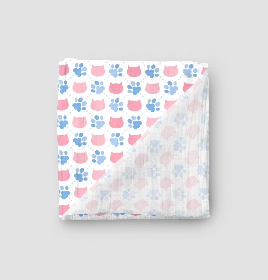 パターン名 ねこと肉球 格子柄(25×24cm) ピンク・ブルー