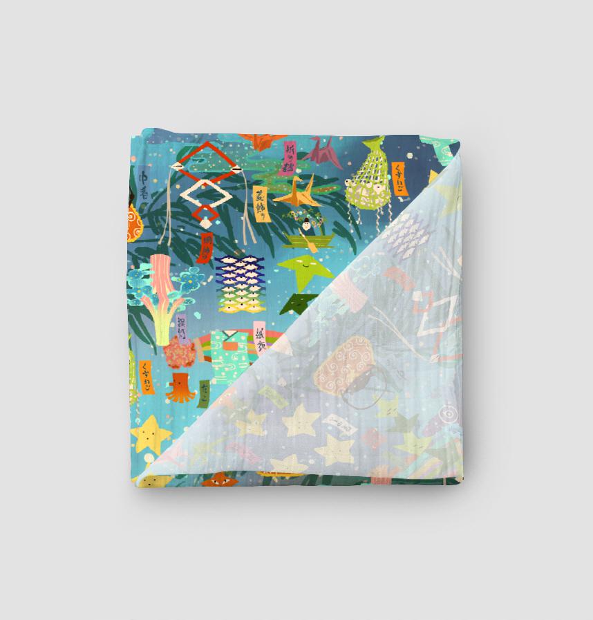 星空のもと、煌びやかに化けた七夕飾りの妖怪たちをデザインにしました。