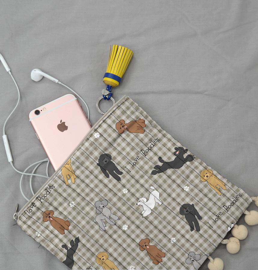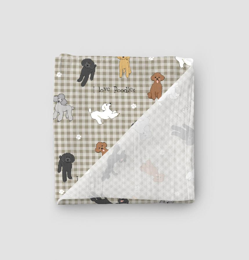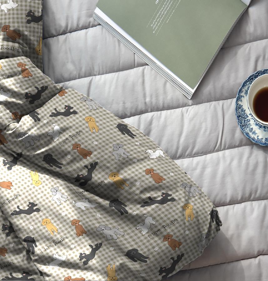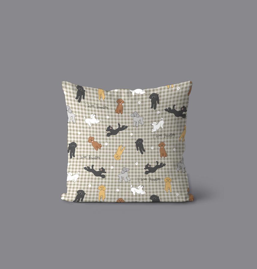 シックなベージュ系ギンガムチェックにいろんなカラーのプードルさん