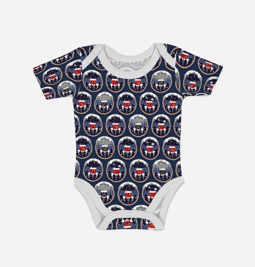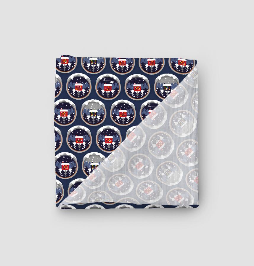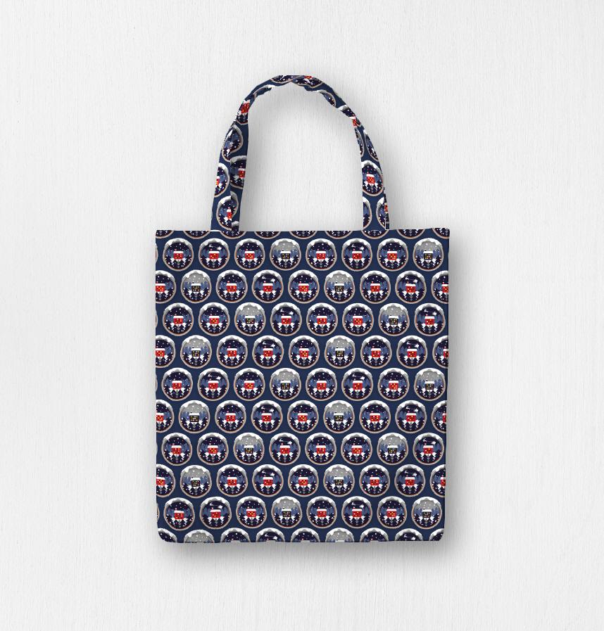 パターン説明 カーブミラーに映るクリスマスのシーンを描いたパターンです。カーブミラーの上に降り積もる雪がアクセント。インテリア・小物・入園入学グッズなどに。