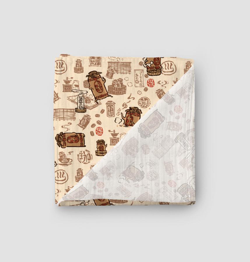 手足の生えたコーヒー牛乳の瓶が温泉を楽しむ様子をデザインにしました。
