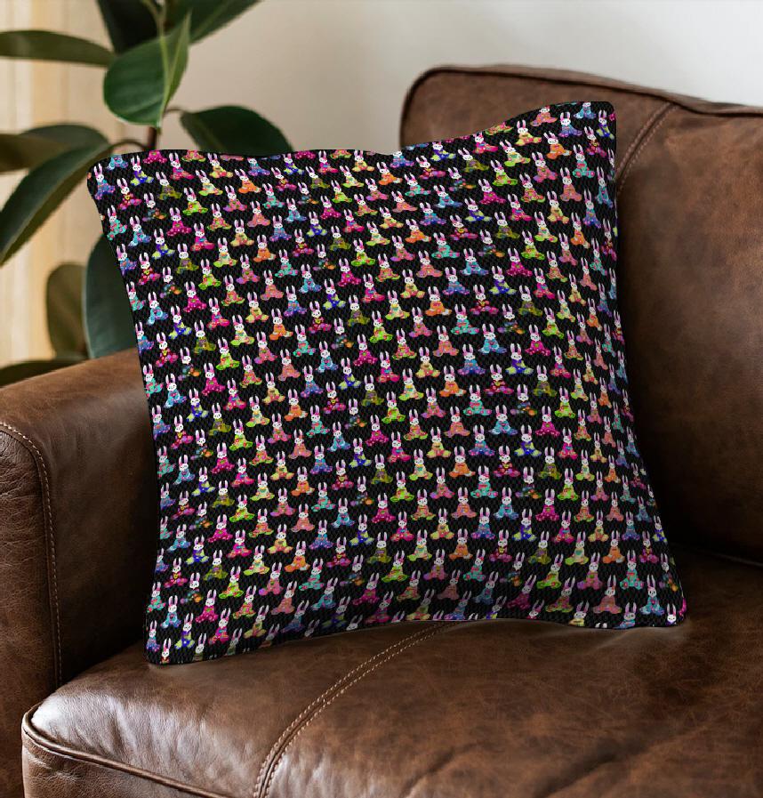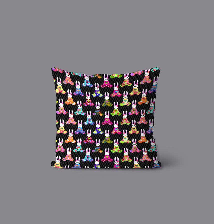 パターン説明 16種類のお祝い柄模様の着物を着た、2023年干支のウサギさん