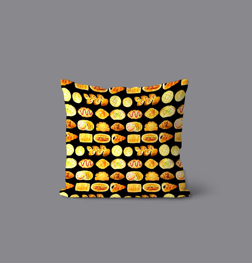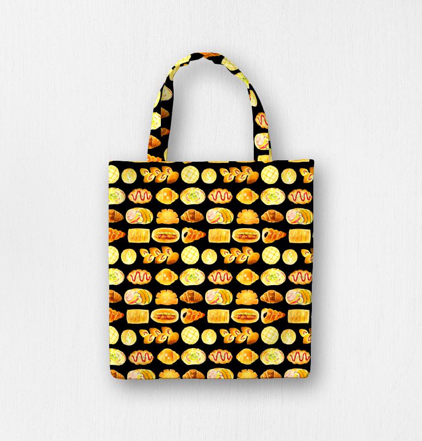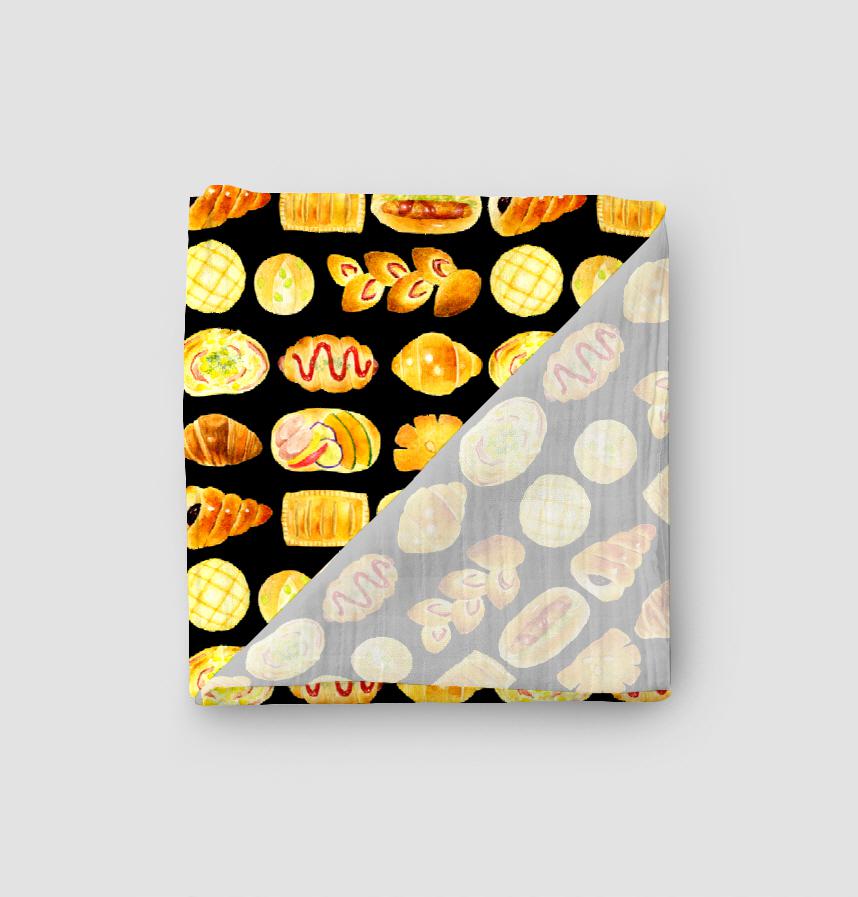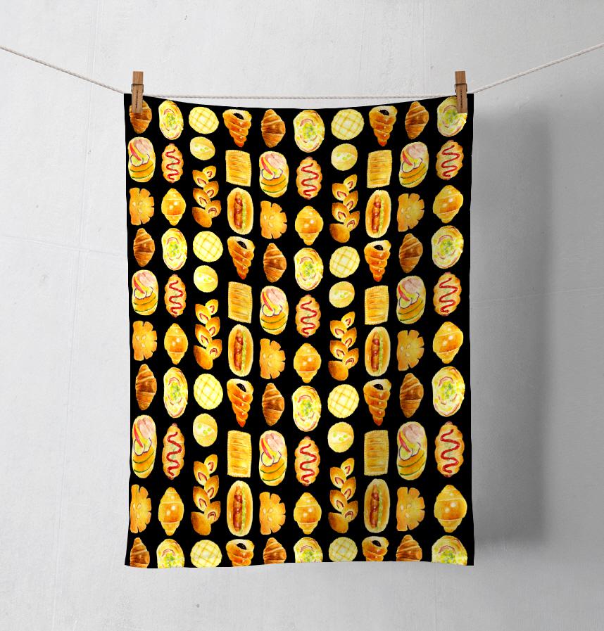 パターン説明 焼きたてでおいしそうなパンたちのテキスタイルです。