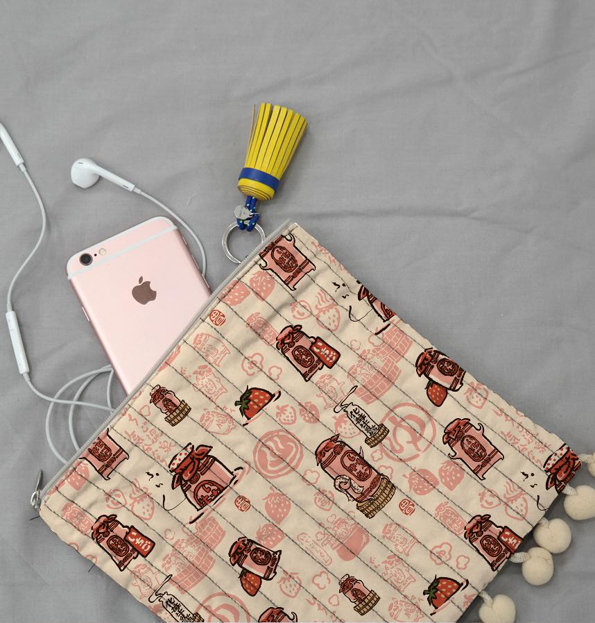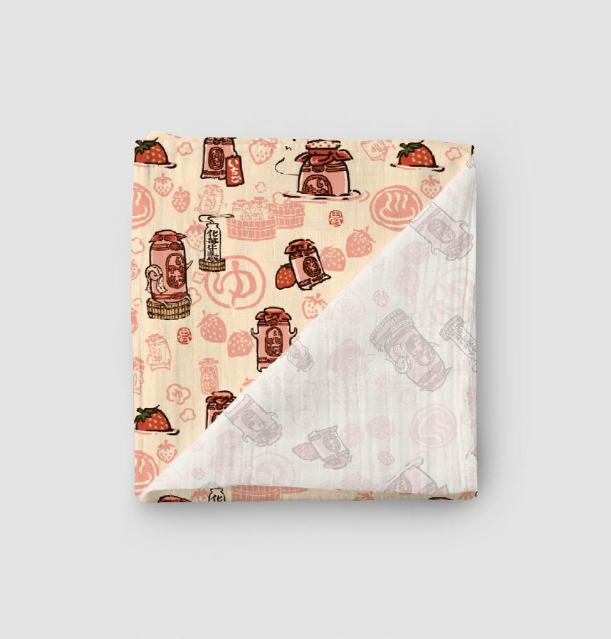 手ぬぐいもって温泉三昧ないちご牛乳瓶の絵をデザインにしました。