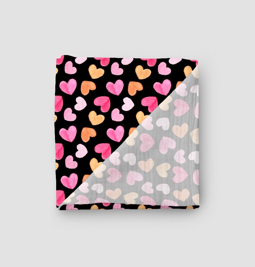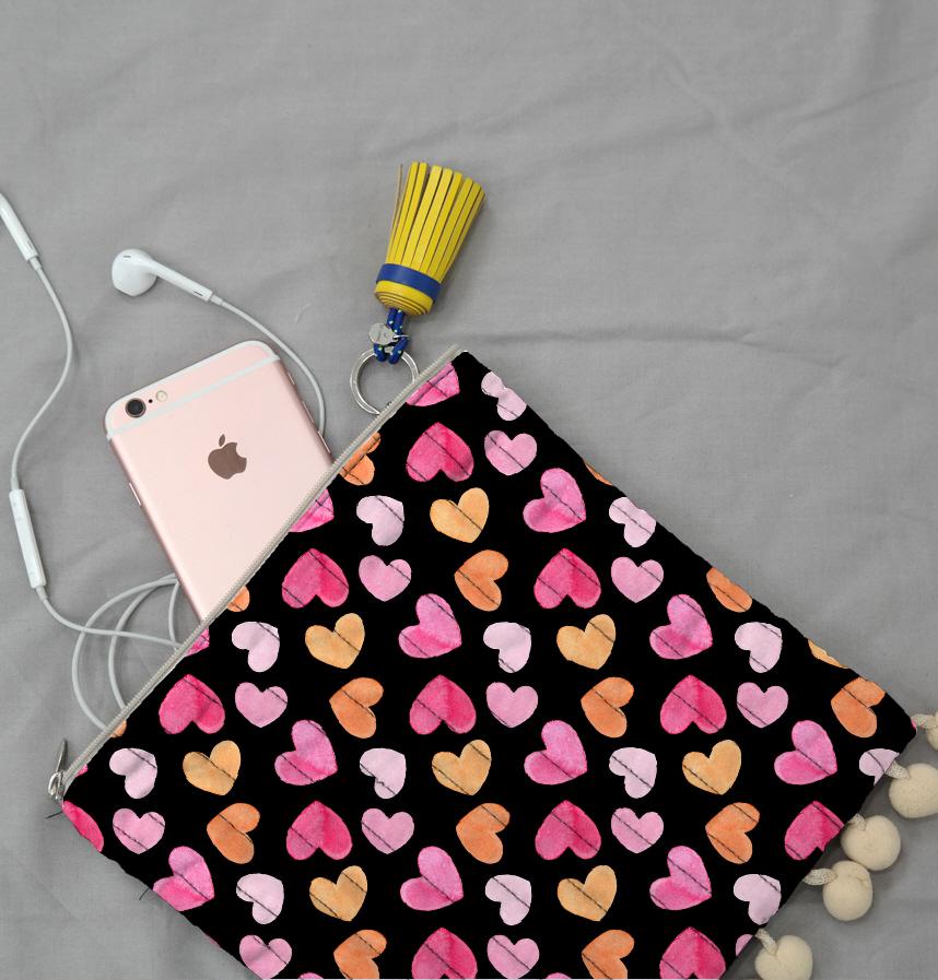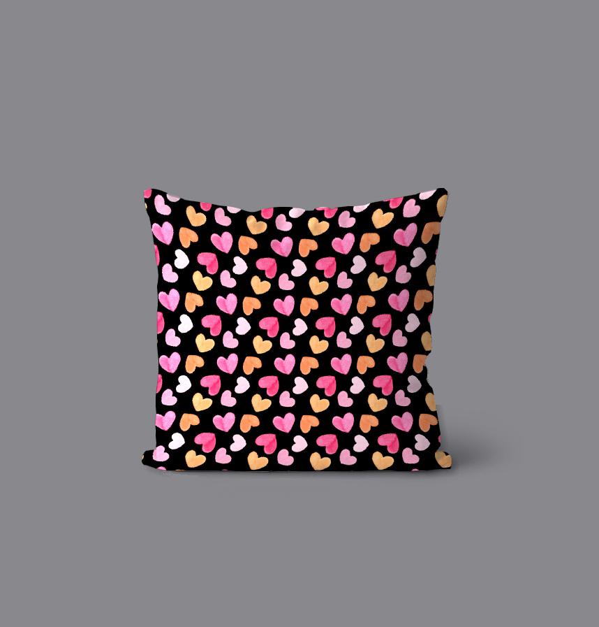 パターン説明 水彩絵の具の風合いがあたたかい、ハートマークのテキスタイルです。