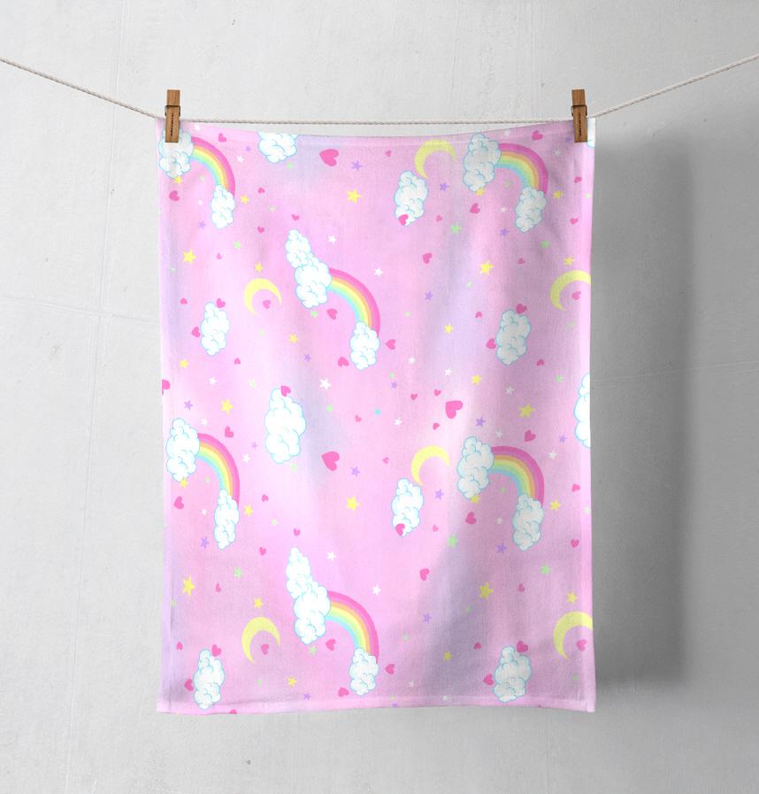 ファンシーなピンクの夜空に虹をデザインしました。