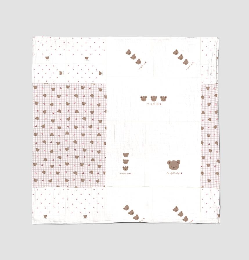 大サイズ横長方形3連続テディベア:約60㎝×縦27.5㎝(底配色別布使いデザインでレッスンバックやピアニカバックなど作れます)