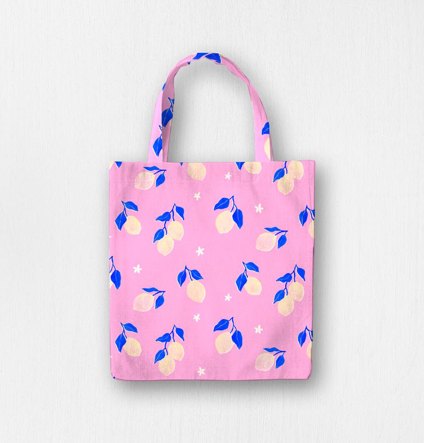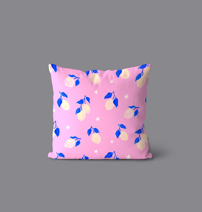 ピンクと青の配色がかわいいレモン柄