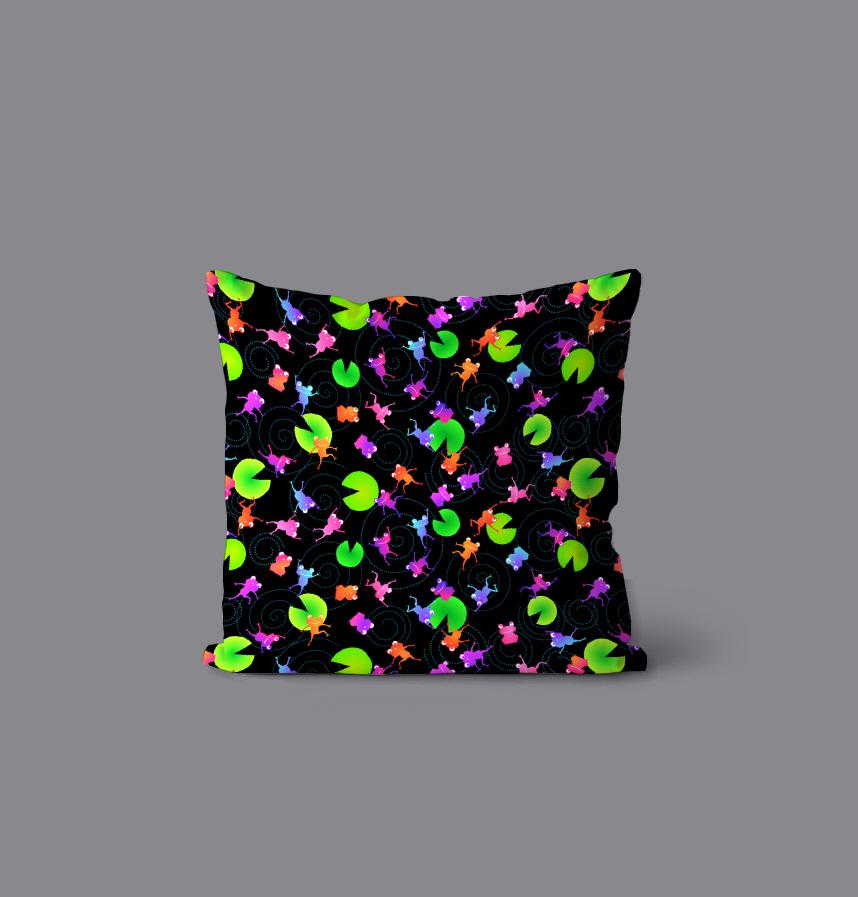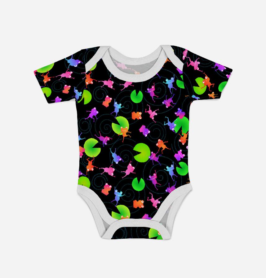 パターン説明 水辺で遊ぶカラフルなカエルちゃん