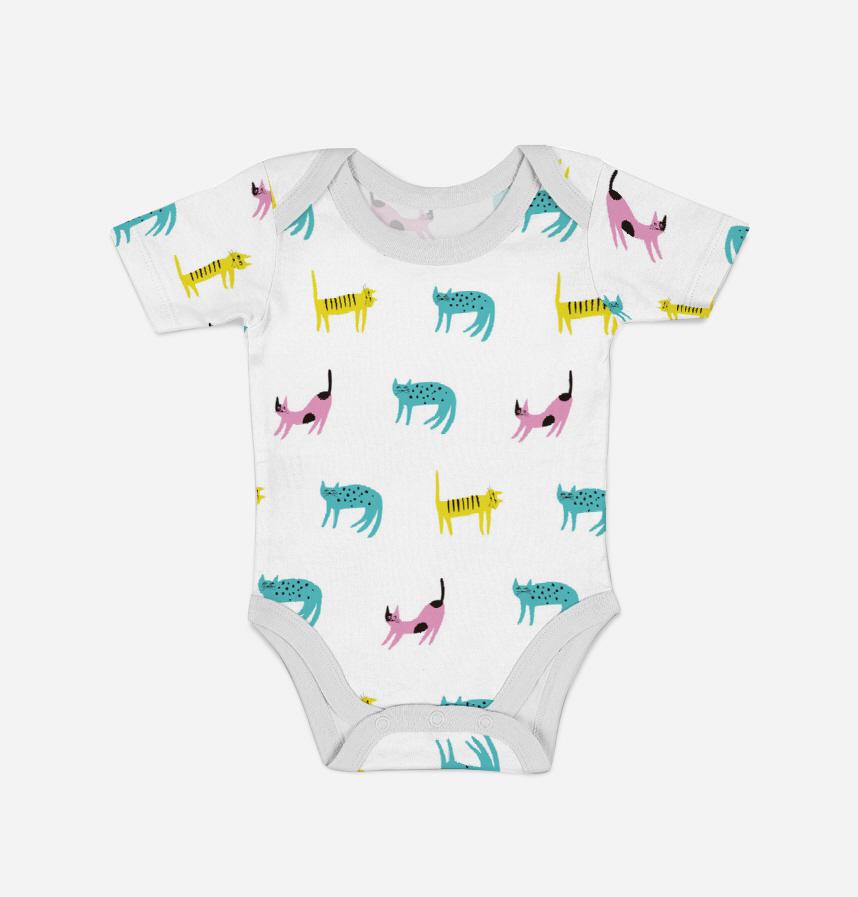パターン説明 海外風なテイストのカラフルな猫のパターンです。