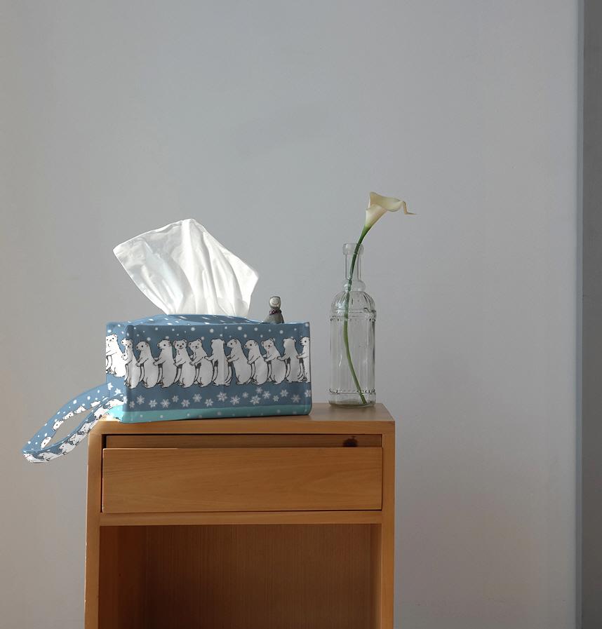パターン説明 冬毛のオコジョが並んだパターンです。