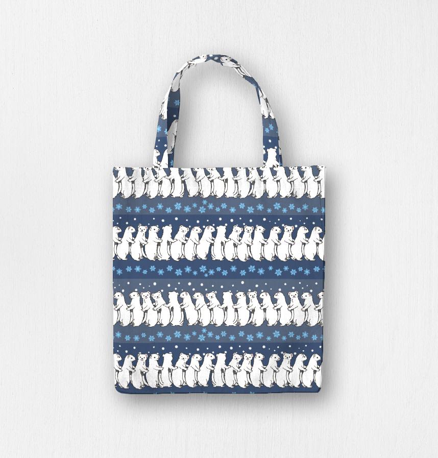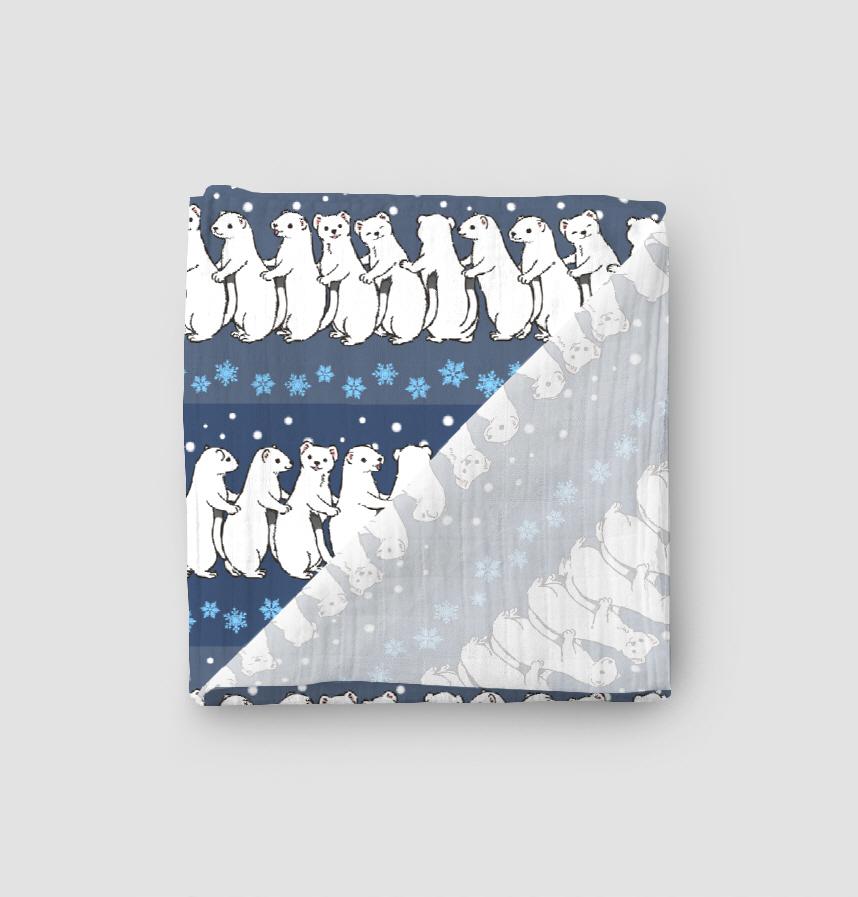 パターン説明 冬毛のオコジョが並んだパターンです。