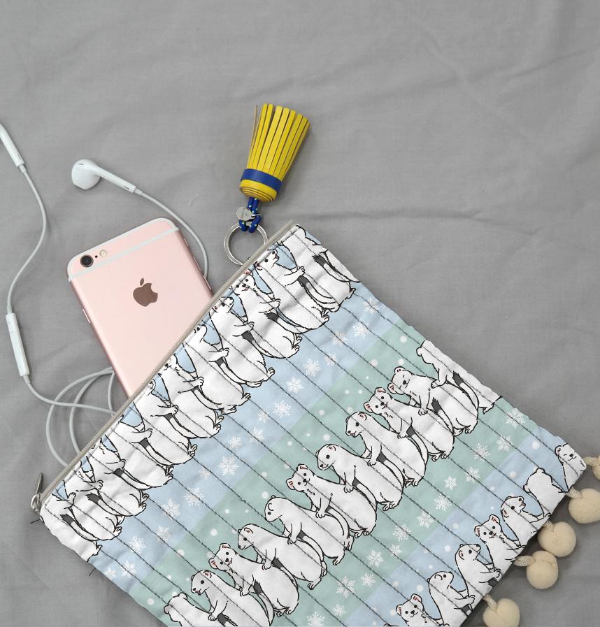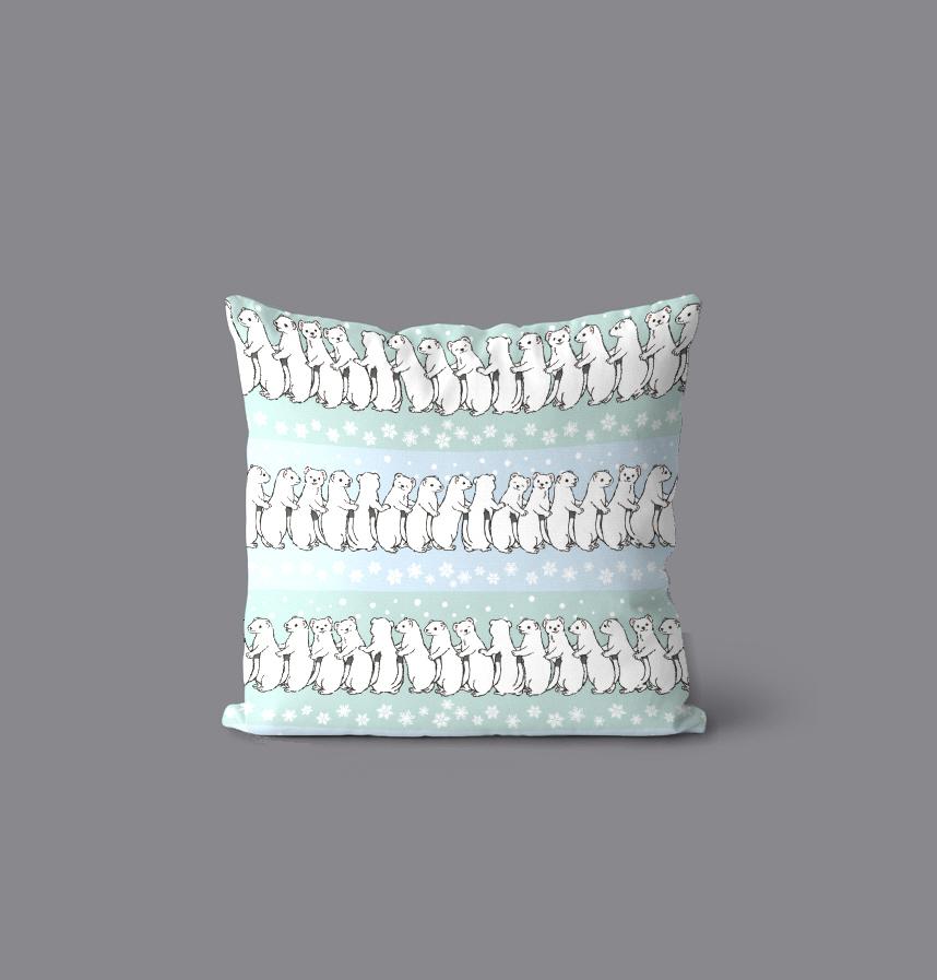 パターン説明 冬毛のオコジョが並んだパターンです。