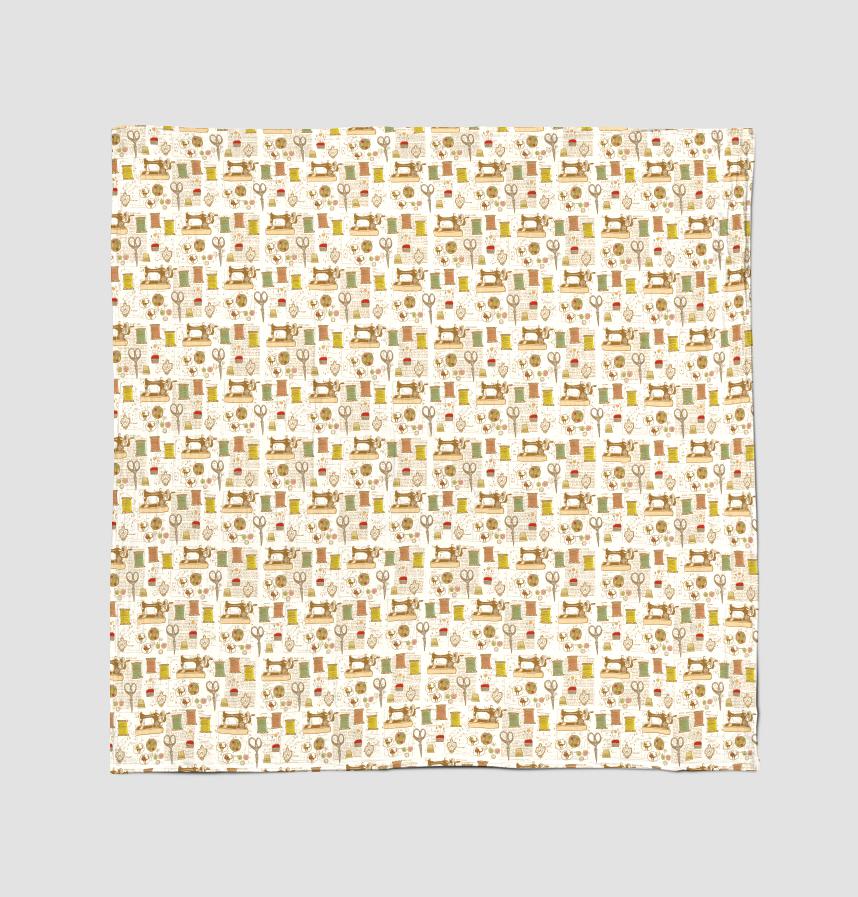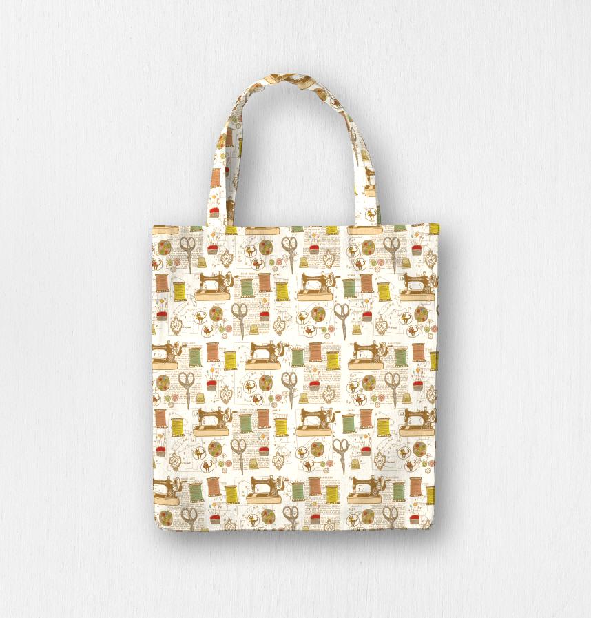 ミシン、糸、ボタン、糸切りばさみ、まち針など