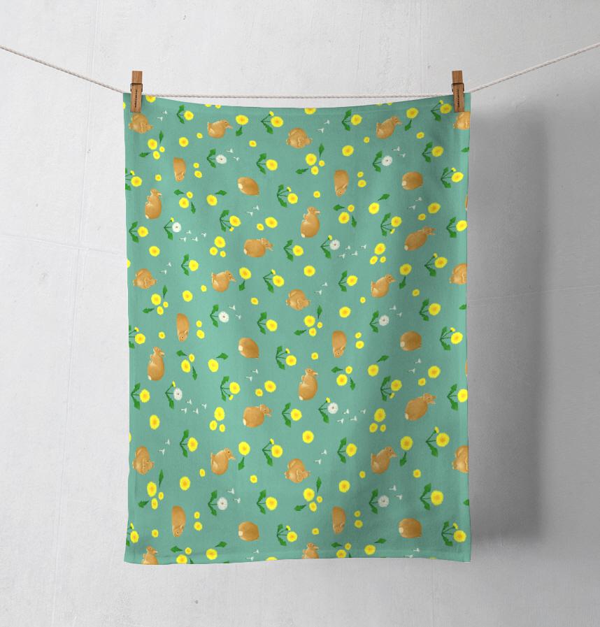 パターン名 オレンジうさぎとたんぽぽ_グリーン