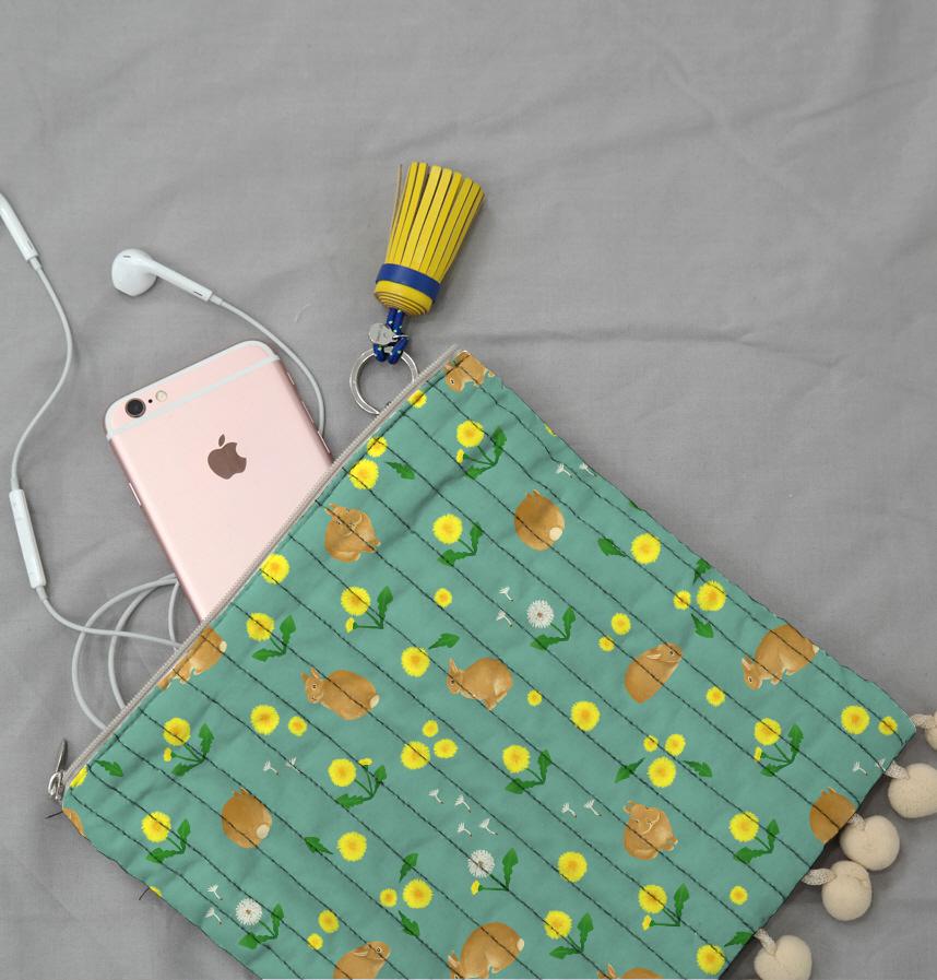 パターン説明 オレンジうさぎさんとたんぽぽのパターンです。
