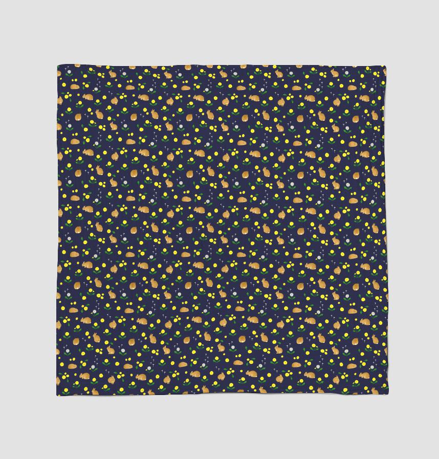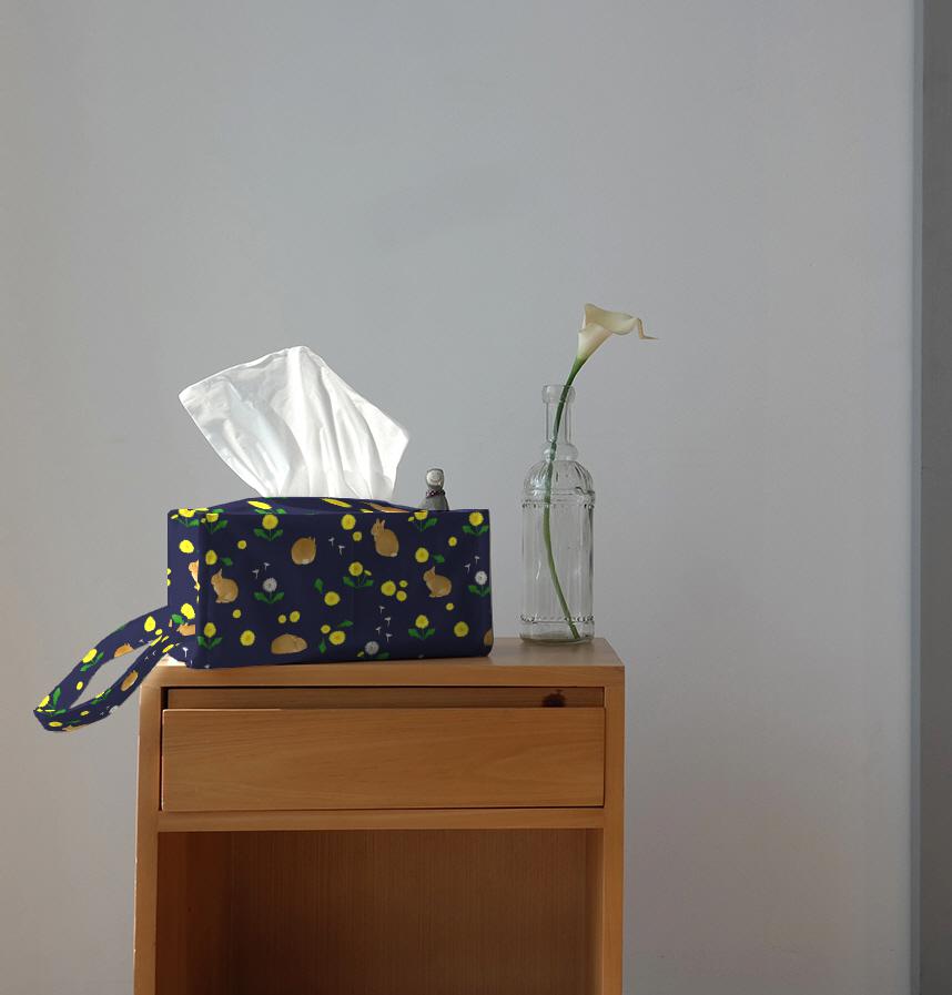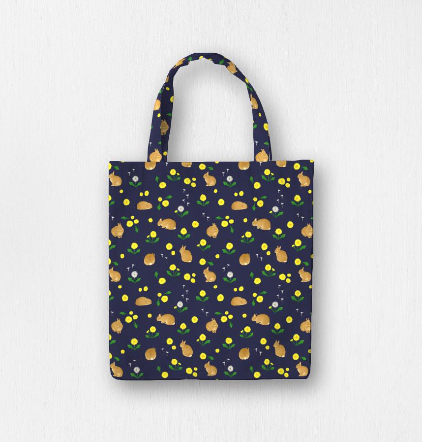 パターン名 オレンジうさぎとたんぽぽ_ネイビー