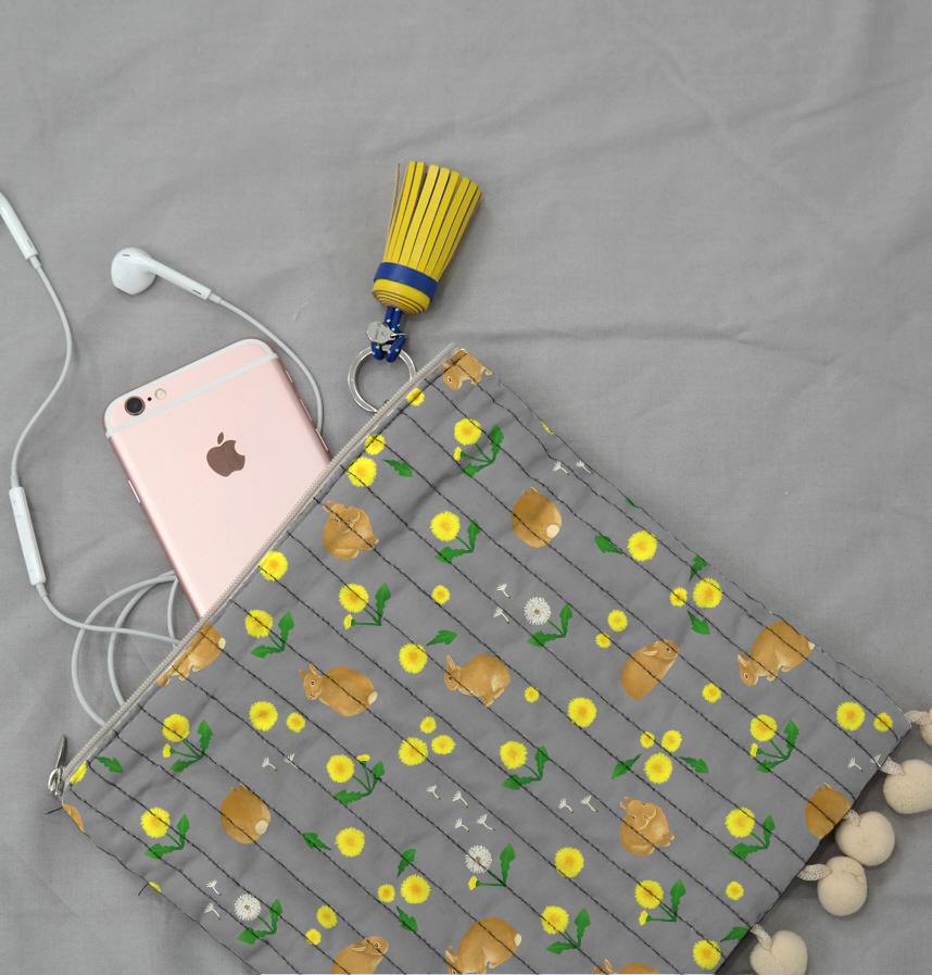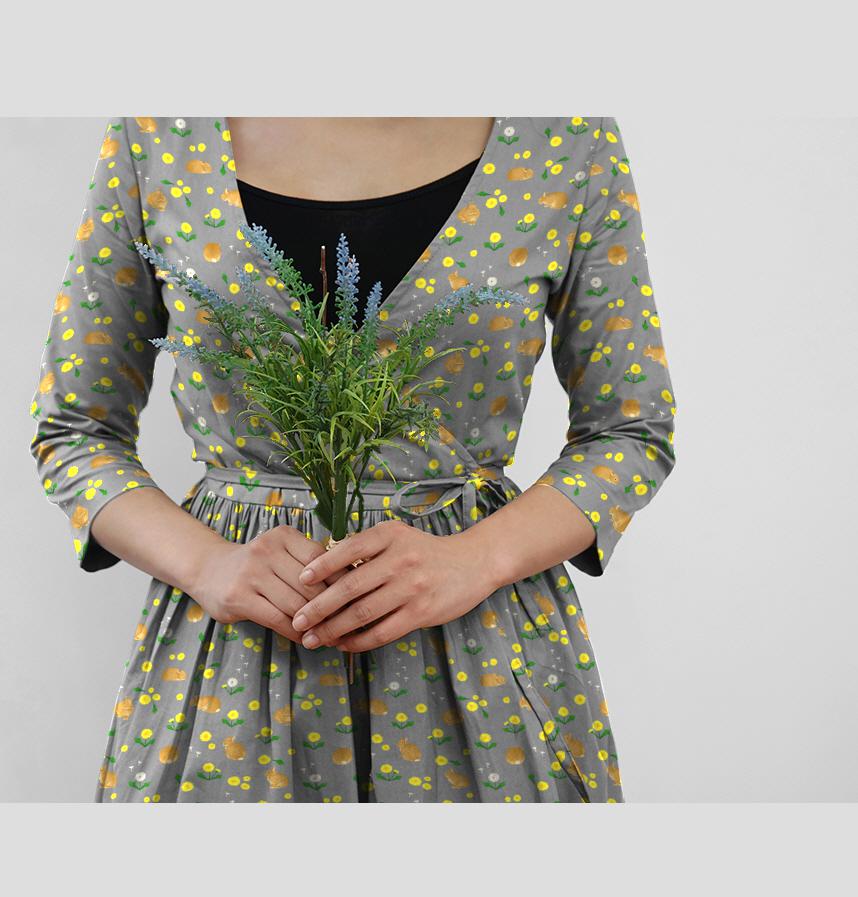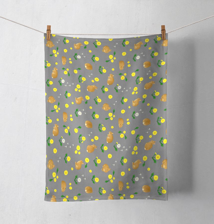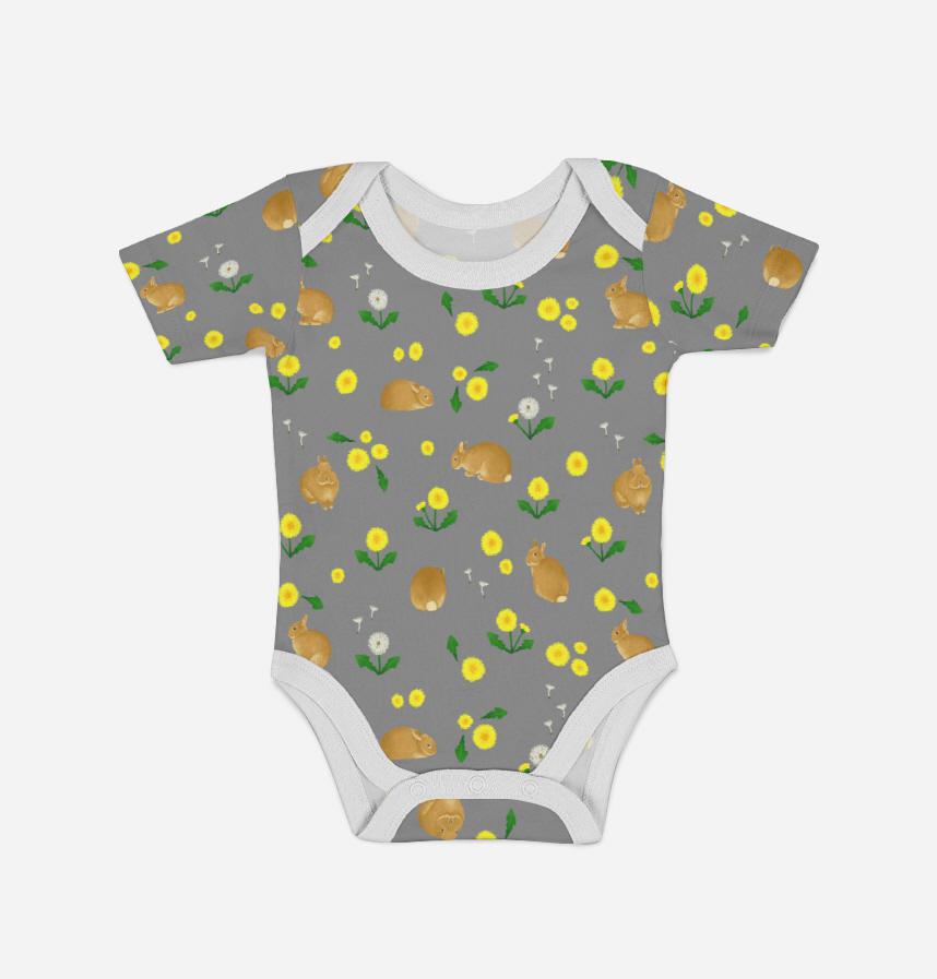 パターン名 オレンジうさぎとたんぽぽ_グレー