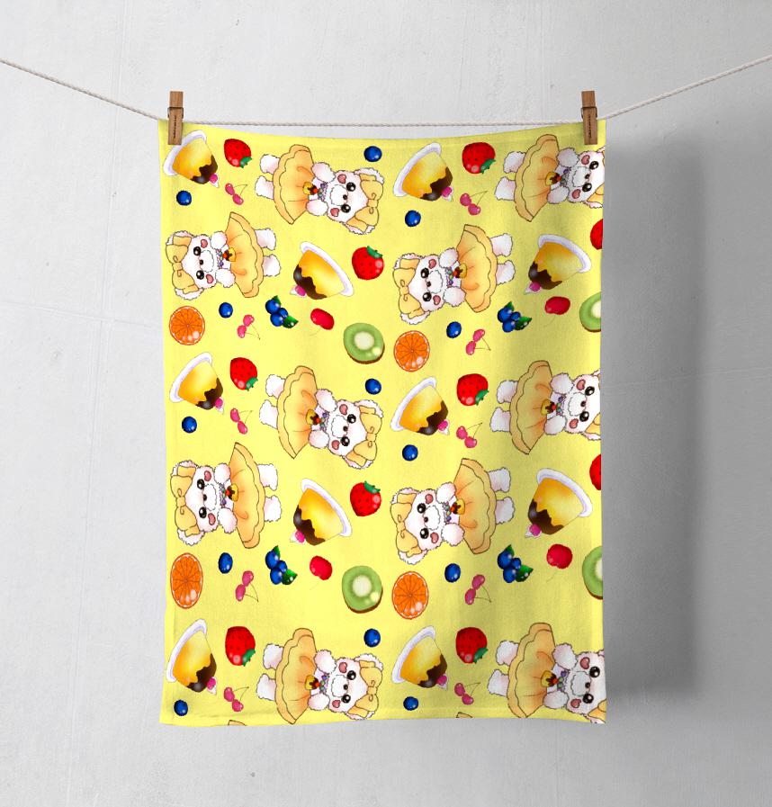 プリンとフルーツ柄で、プリンアラモードをイメージ。