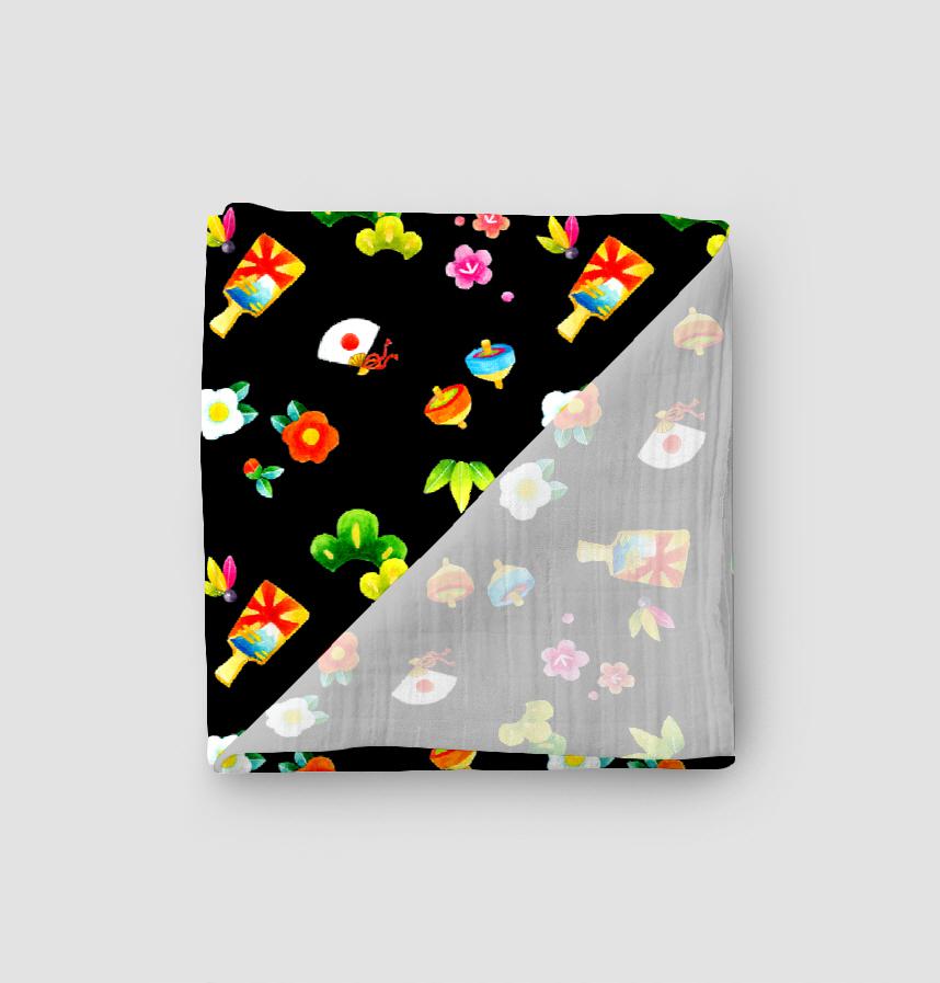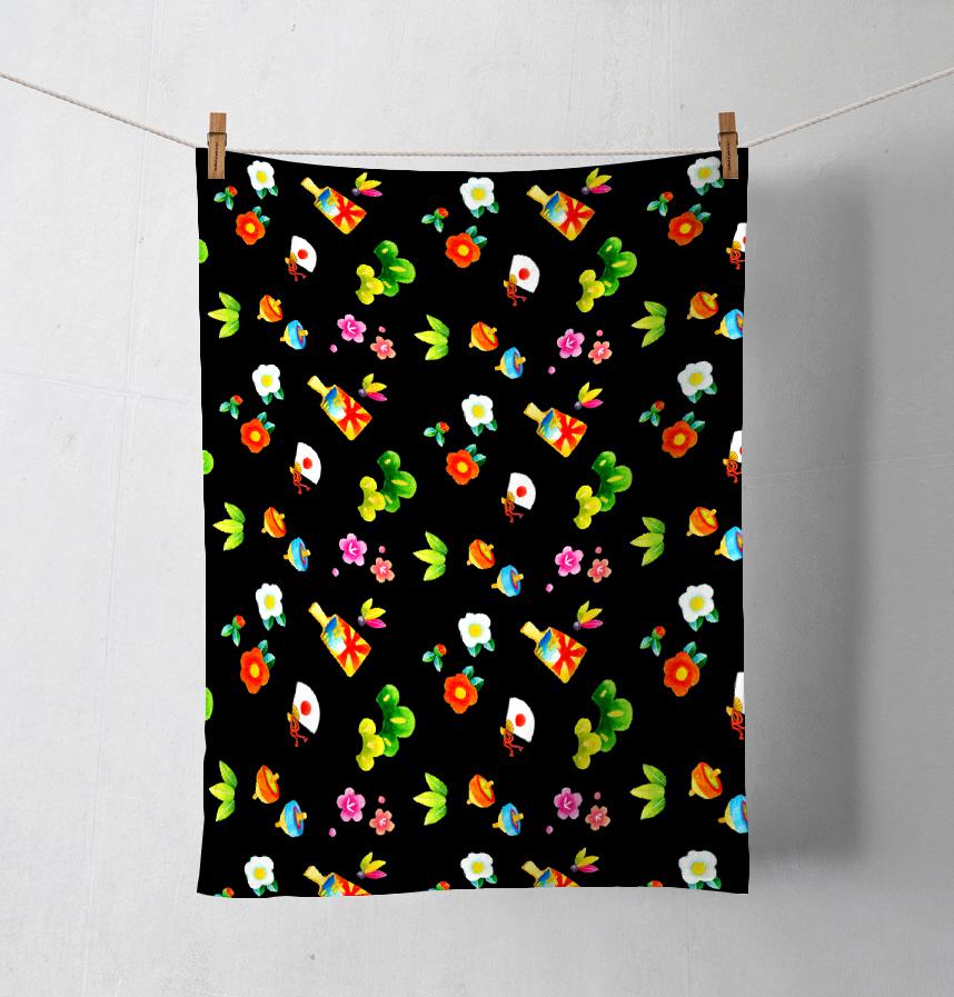 パターン名 正月モチーフのパターン 手描き水彩イラストのテキスタイル