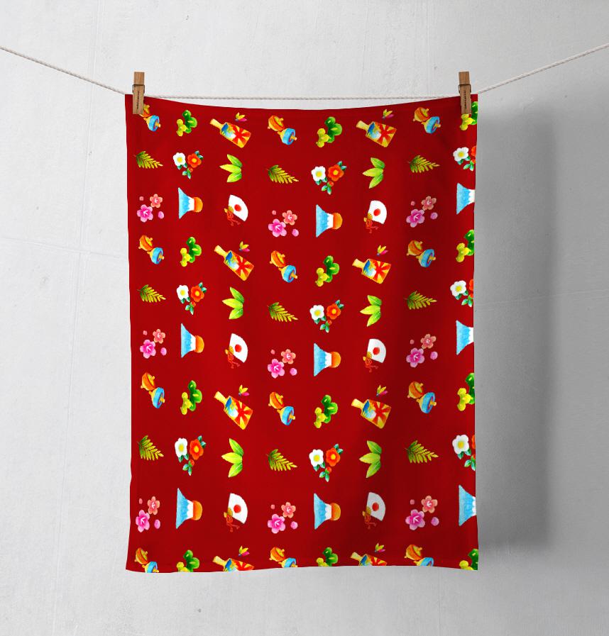 パターン名 正月モチーフのパターン 手描き水彩イラストのテキスタイル
