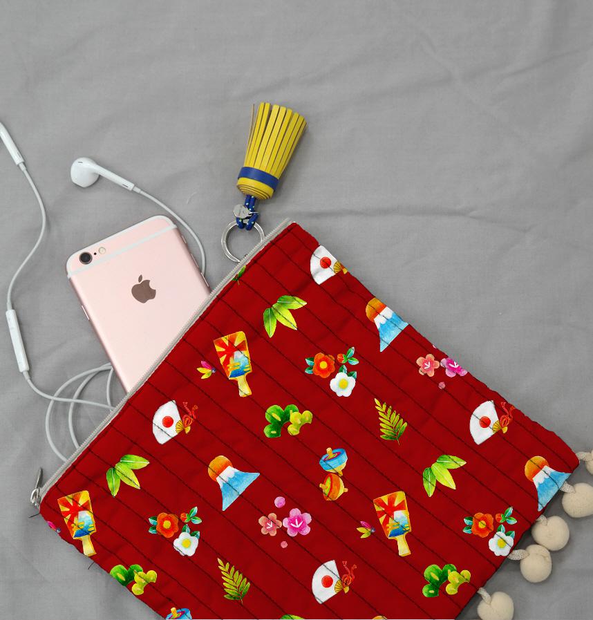 パターン説明 水彩色鉛筆で描いた正月モチーフのパターンです。