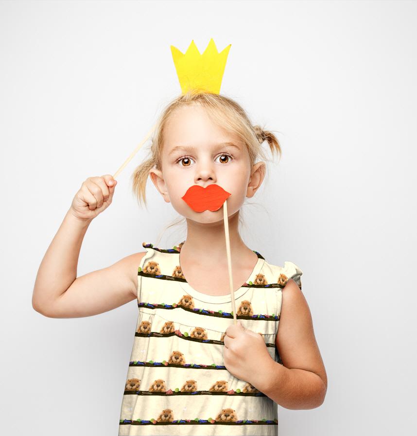 ほおづえビーバーとフルーツ柄。