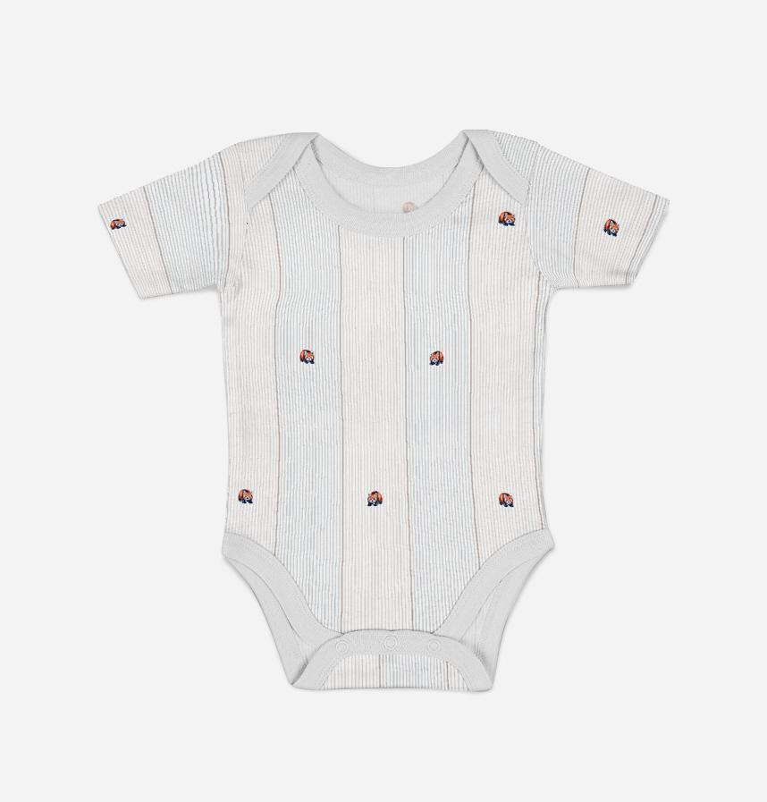 ベージュとグレーの細いストライプの上にレッサーパンダ